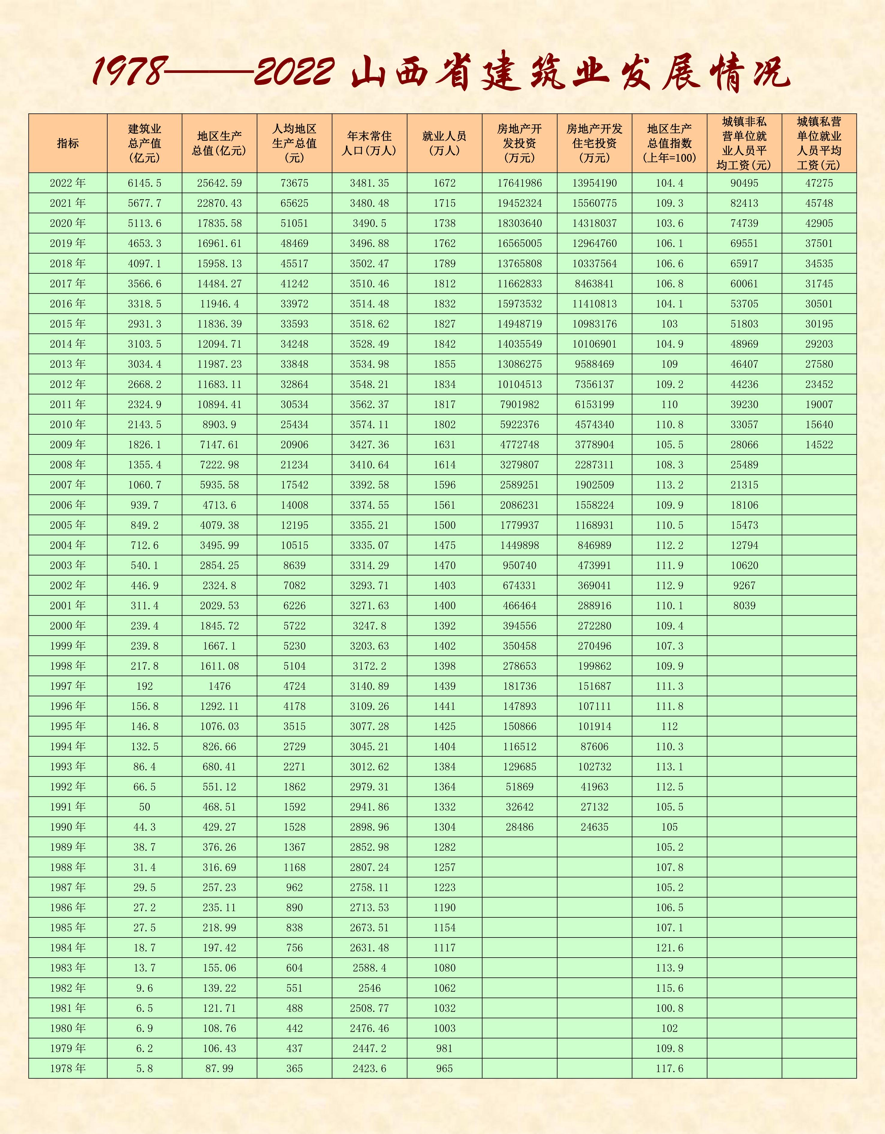 改革開放四十六年來,山西建筑業總產值增長111多倍,應該說發展速度超越了歷史空間,這是從自己家內部看自己。