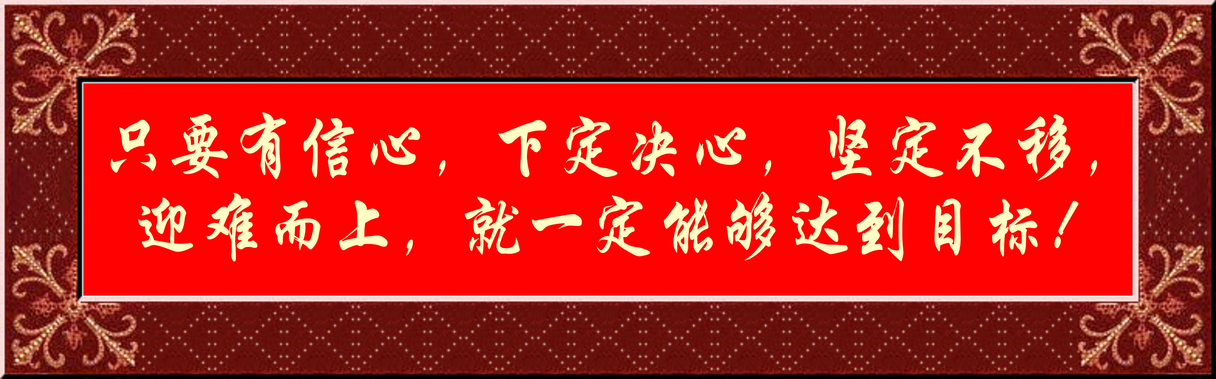 由(you)此(ci)可見,困難是成(cheng)功的必經(jing)之路,是成(cheng)就未來的必由(you)之路,只要有信心,下定(ding)決心,堅(jian)定(ding)不移,迎難而上,就一定(ding)能夠達到目標(biao)!