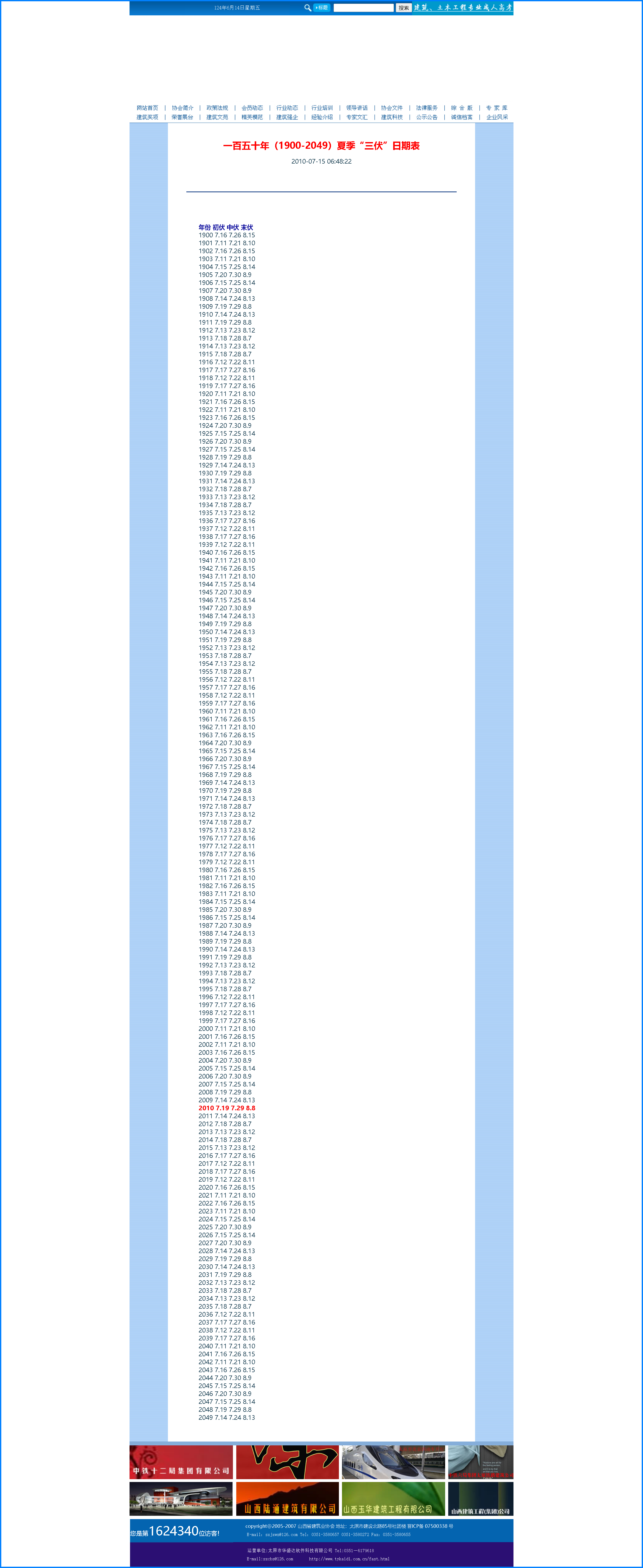 一、1900-2049的一百五十(shi)年,三伏天為30天的年份(fen)有43次,40天的年份(fen)有107次、