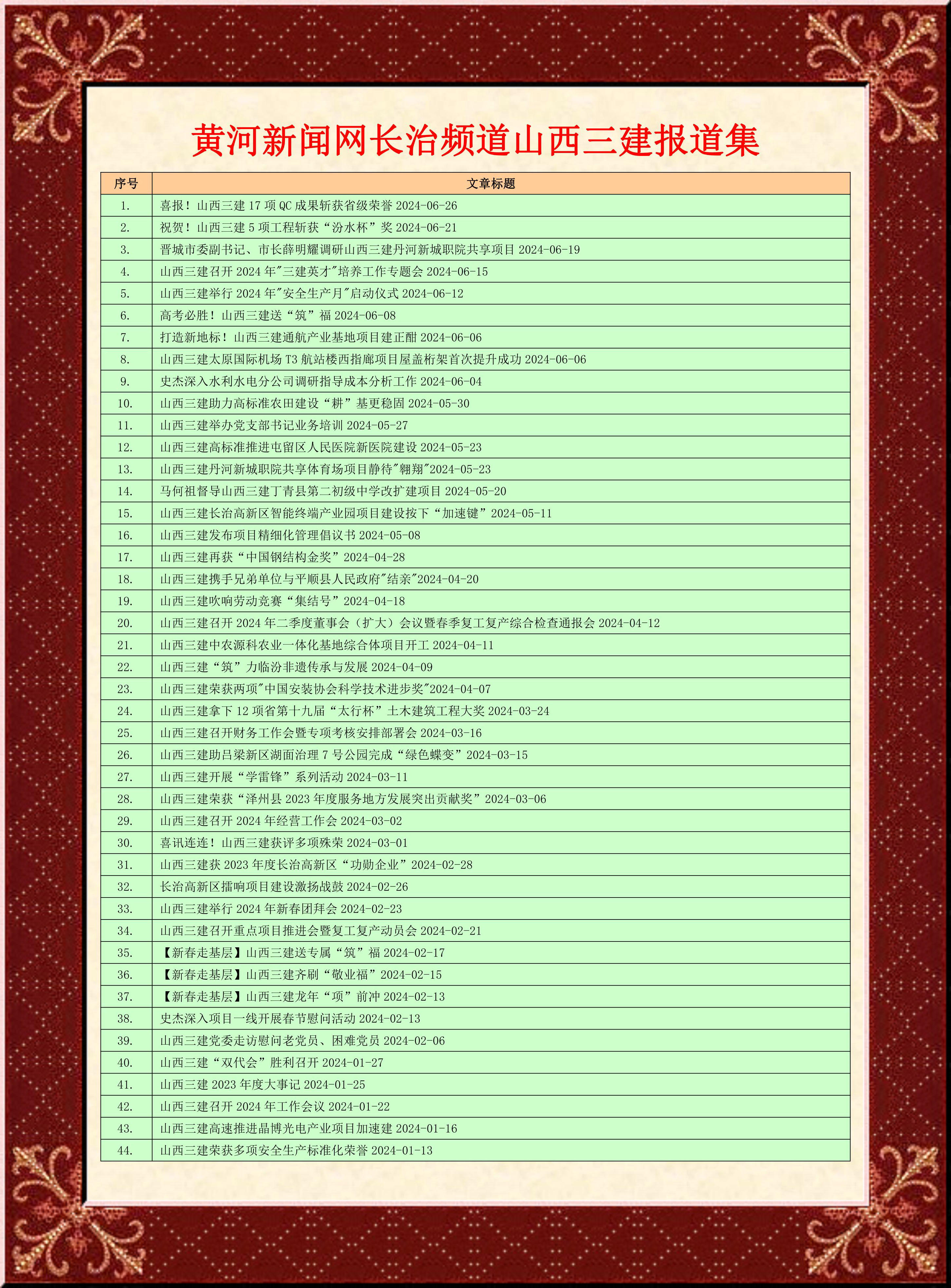 2003年通(tong)過質量(liang)/環境/職業(ye)(ye)健康安全體系認證。集(ji)團擁有省(sheng)級企業(ye)(ye)技(ji)(ji)術(shu)中心,技(ji)(ji)術(shu)力量(liang)雄(xiong)厚,施工(gong)(gong)經(jing)驗豐富,承(cheng)建過眾多的(de)大型、重點(dian)、標志性(xing)工(gong)(gong)程(cheng)項(xiang)(xiang)(xiang)目,創建了大批(pi)優(you)質工(gong)(gong)程(cheng),累(lei)計獲得建筑(zhu)工(gong)(gong)程(cheng)魯班獎4項(xiang)(xiang)(xiang)、國(guo)(guo)家優(you)質工(gong)(gong)程(cheng)2項(xiang)(xiang)(xiang)、中國(guo)(guo)鋼結構金獎2項(xiang)(xiang)(xiang)、中國(guo)(guo)安裝之星1項(xiang)(xiang)(xiang)、汾水杯(bei)27項(xiang)(xiang)(xiang)、太行杯(bei)29項(xiang)(xiang)(xiang)、省(sheng)優(you)工(gong)(gong)程(cheng)88項(xiang)(xiang)(xiang),擁有專(zhuan)利技(ji)(ji)術(shu)125項(xiang)(xiang)(xiang)、著(zhu)作權2項(xiang)(xiang)(xiang)、山西省(sheng)科技(ji)(ji)成果登記5項(xiang)(xiang)(xiang)、施工(gong)(gong)工(gong)(gong)法114項(xiang)(xiang)(xiang)、建筑(zhu)業(ye)(ye)新技(ji)(ji)術(shu)應用示(shi)范工(gong)(gong)程(cheng)106項(xiang)(xiang)(xiang)、建筑(zhu)業(ye)(ye)綠(lv)色(se)示(shi)范工(gong)(gong)程(cheng)4項(xiang)(xiang)(xiang)。