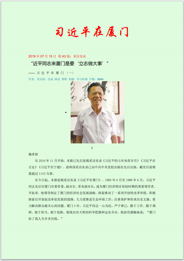 40年前,改革(ge)開放浪潮初起,習近平同志前往廈門工作,“第(di)一(yi)(yi)次(ci)直接參與(yu)沿海發(fa)達地(di)區(qu)的(de)改革(ge)開放,第(di)一(yi)(yi)次(ci)親歷城市的(de)建設和管理”。