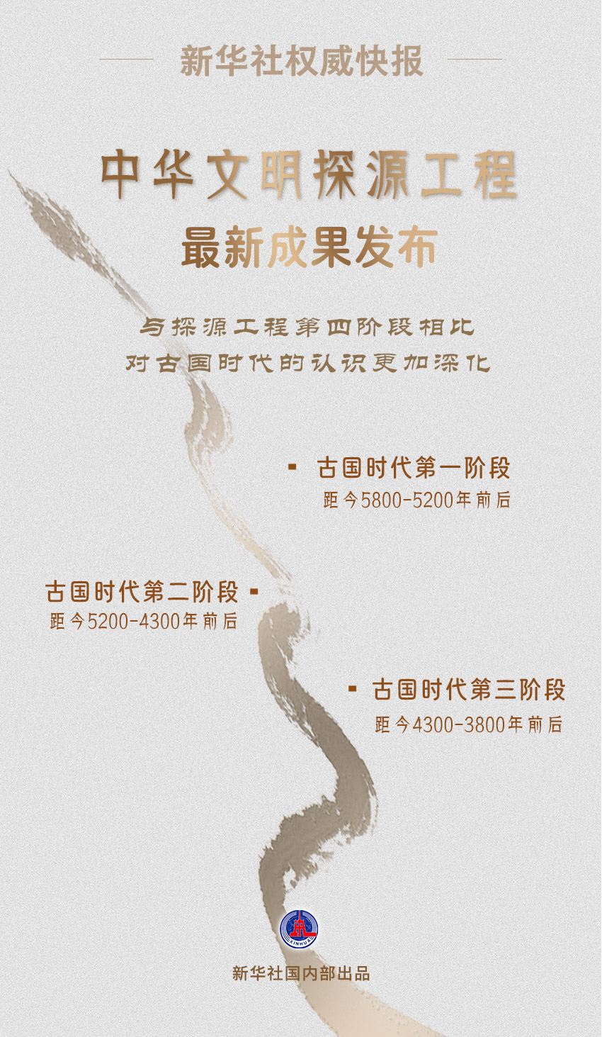 項目研究認為,大約從距今約5800年開始,中華大地上各個區域相繼出現較為明顯的社會分化,進入了文明起源的加速階段,可將從距今5800年至距今3500年劃分為古國時代和王朝時代兩個時代,其中古國時代可進一步細分為三個小階段。與探源工程第四階段相比,對古國時代的認識更加深化。具體來說: