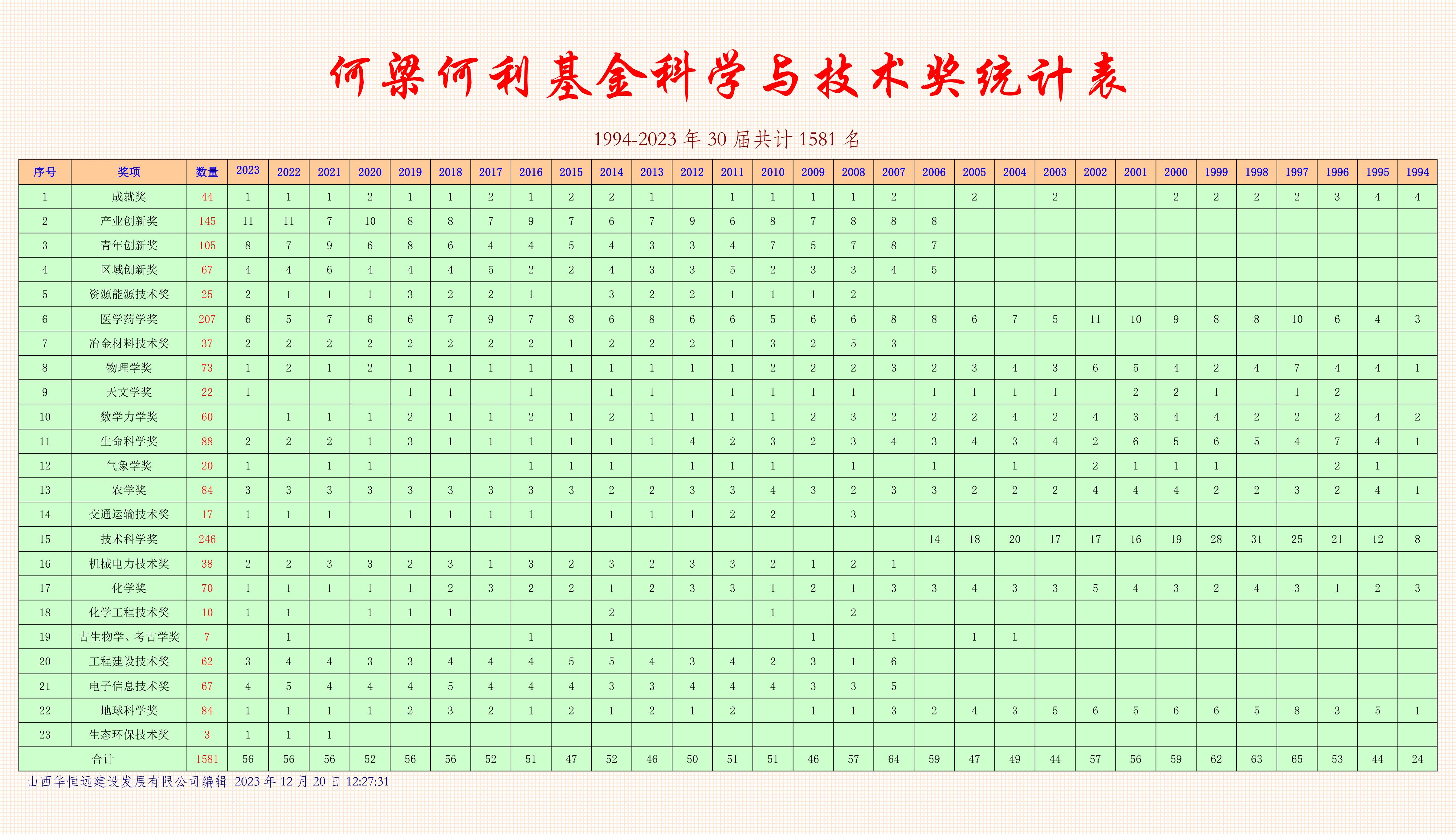 2023年度何梁何利基金科學與技術獎,經過專業評審組會議初評和評選委員會會議終評,從917位有效候選人中評選出56位獲獎人。其中最高獎項——何(he)梁何(he)利基金科學與技術成就(jiu)獎,授予我國“神舟之父”,神舟飛船首任總設計師戚(qi)發軔院士(shi)。本年度科學(xue)與技(ji)術(shu)創新獎(jiang)產(chan)業創新獎(jiang)首(shou)(shou)次獎(jiang)勵(li)了一(yi)位奮斗在載(zai)人航(hang)天工(gong)程產(chan)品(pin)制造一(yi)線的特級技(ji)師(shi),這是基金獲獎(jiang)科學(xue)家中的首(shou)(shou)位“大國工(gong)匠”,凸顯了社會科技(ji)獎(jiang)勵(li)對高技(ji)能(neng)人才的表彰激勵(li)。