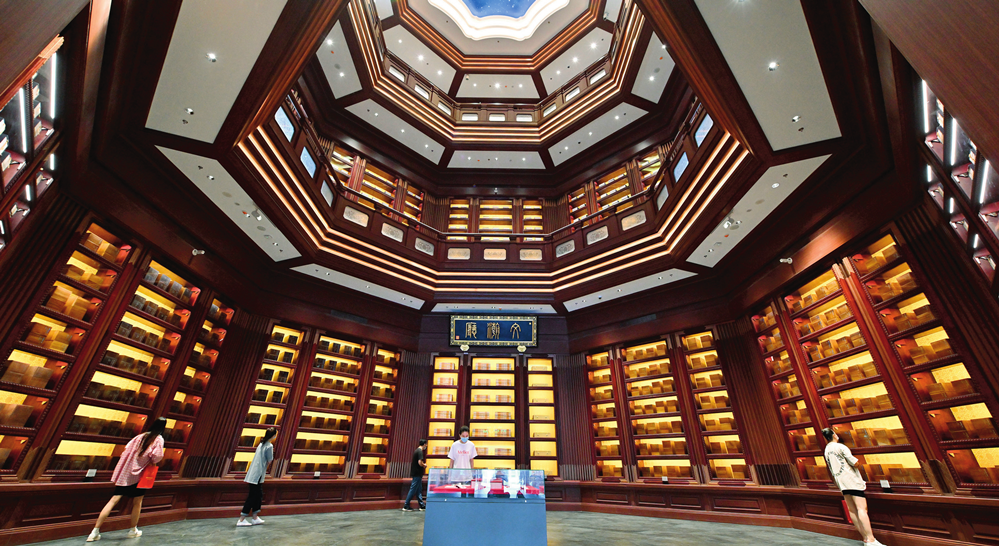 觀眾在位(wei)于北京(jing)的(de)中國國家版本館中央總館文瀚廳內參觀(2022年7月(yue)30日攝(she))李鑫攝(she) / 本刊(kan)