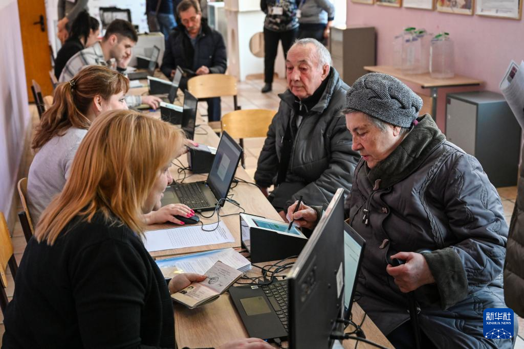 3月15日,選民在俄羅斯首都莫斯科登記參加總統選舉投票。新華社記者曹陽攝