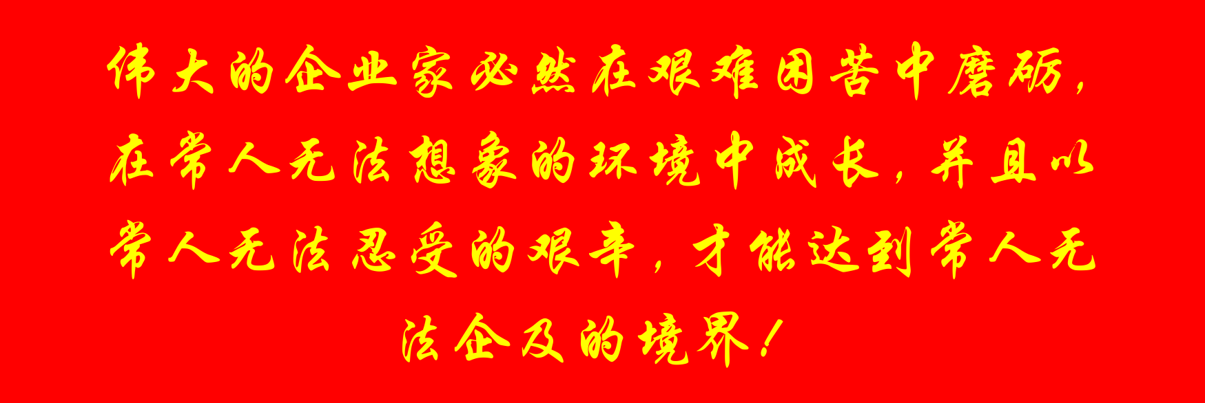 偉大的企業家必然在艱難困苦中磨礪,在常人無法想象的環境中成長,并且以常人無法忍受的艱辛,才能達到常人無法企及的境界!如果你能夠聚集一百人,你就是小悟水平的企業;如果你能夠達到一千人,就是中悟的公司了;如果能夠讓一萬人在你的集團工作,可以達到大悟的標準了;超越十萬人能夠讓幾十萬人在你的麾下工作,大徹大悟的頂峰已經在你的腳下了,那是什么概念呢?!