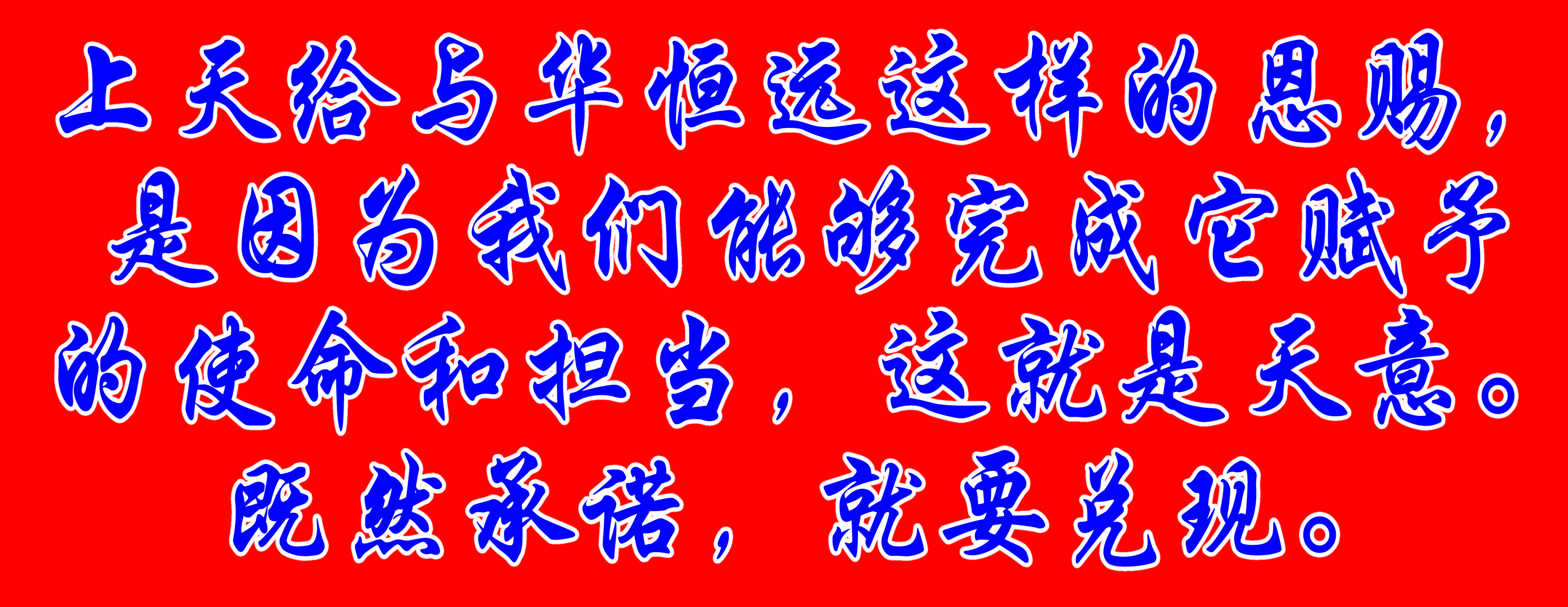 上天給與華恒遠這樣的恩賜,是因為我們能夠完成它賦予的使命和擔當,這就是天意。既然承諾,就要兌現。