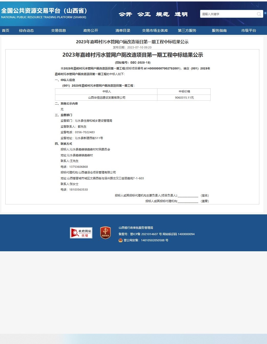 2023年嘉峰村污水管網戶廁改造項目第一期工程
