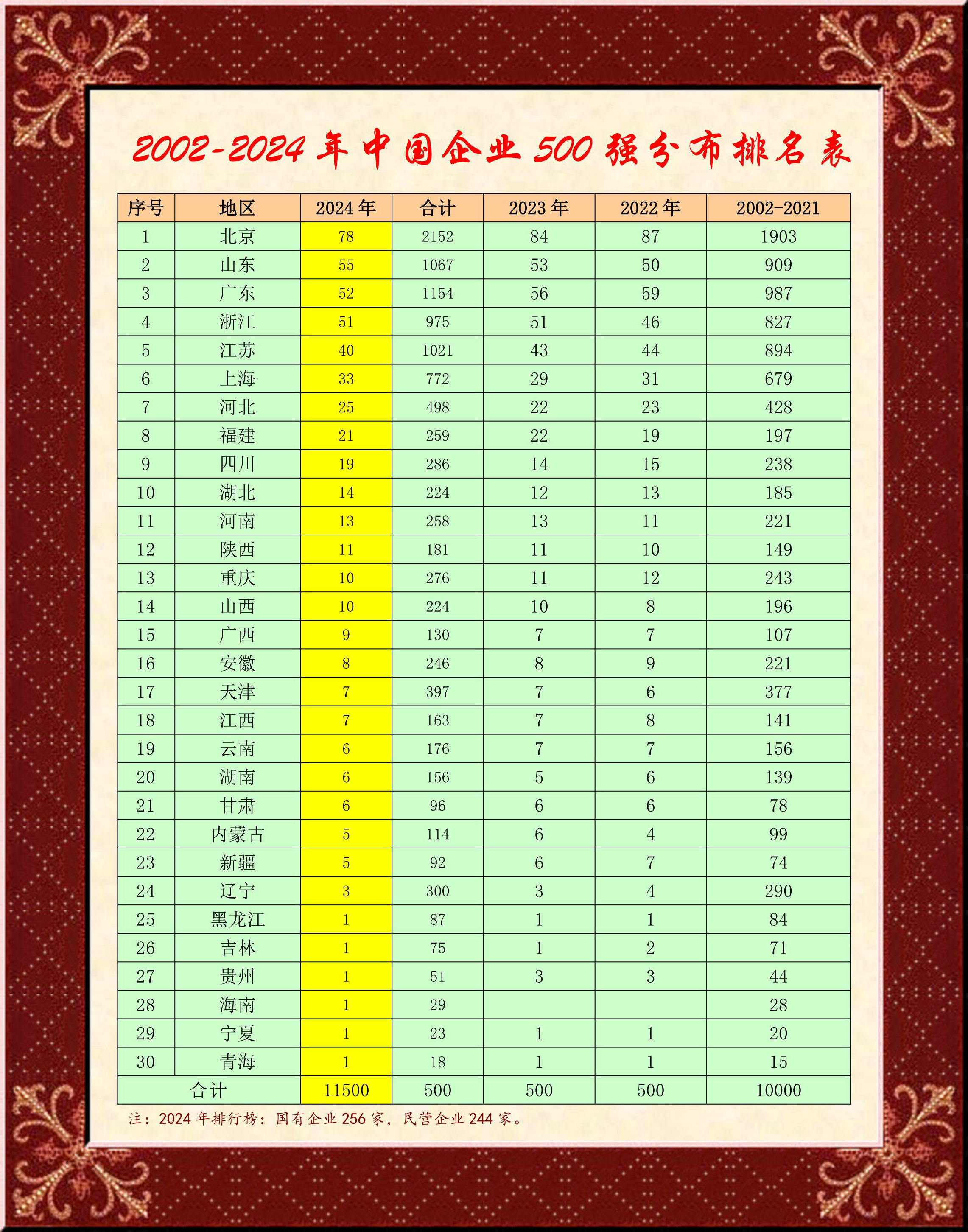 本(ben)報太原9月12日訊(記者王龍飛)9月10日,中國(guo)(guo)企業(ye)聯合會(hui)、中國(guo)(guo)企業(ye)家協會(hui)發布“2024中國(guo)(guo)企業(ye)500強”榜單(dan),我省共有(you)10家企業(ye)上榜,數量與(yu)去年(nian)持平。