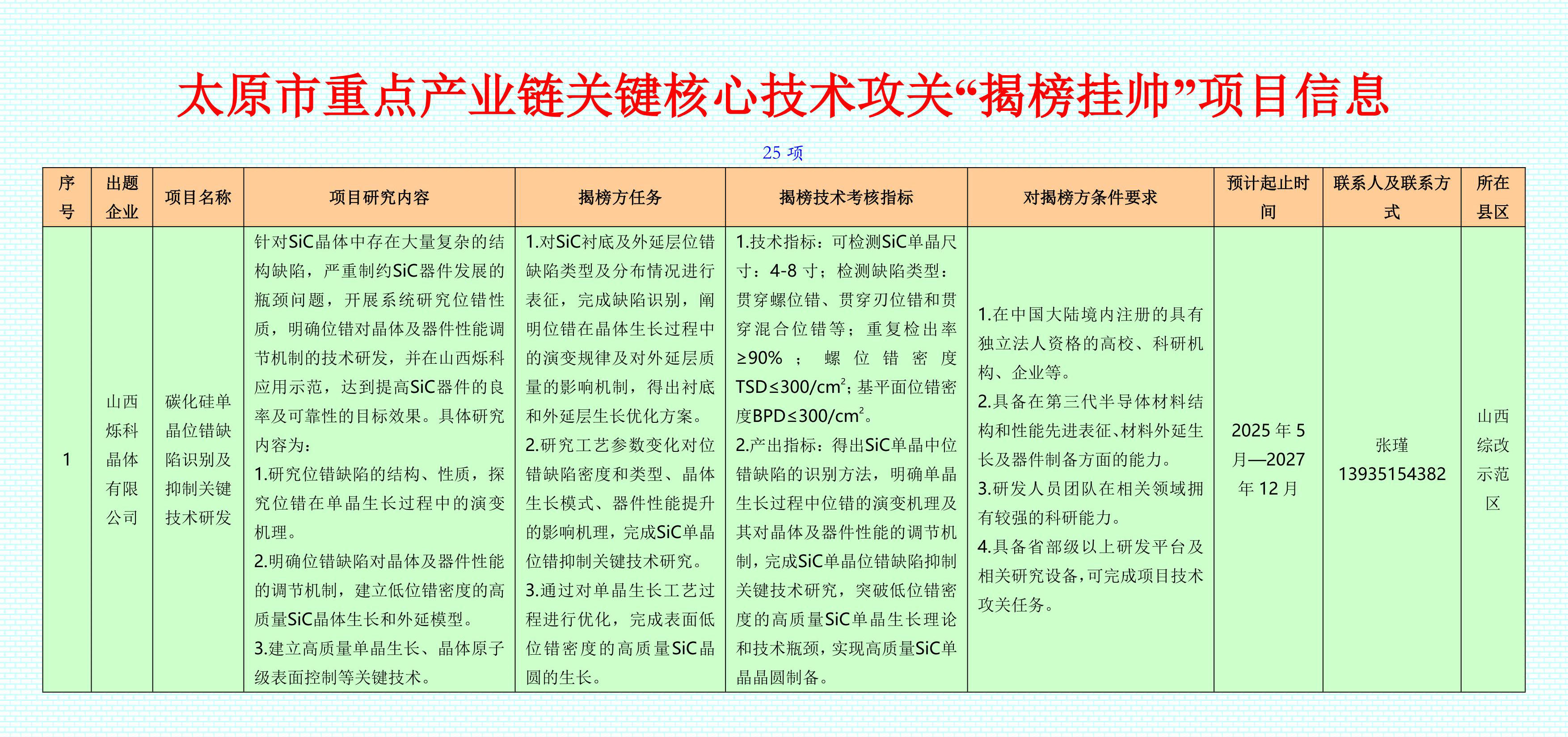 1 山西(xi)(xi)爍科晶(jing)體(ti)有限公司 碳化硅單晶(jing)位錯(cuo)缺陷(xian)識別及抑制關(guan)鍵技術研發 山西(xi)(xi)綜改示范區