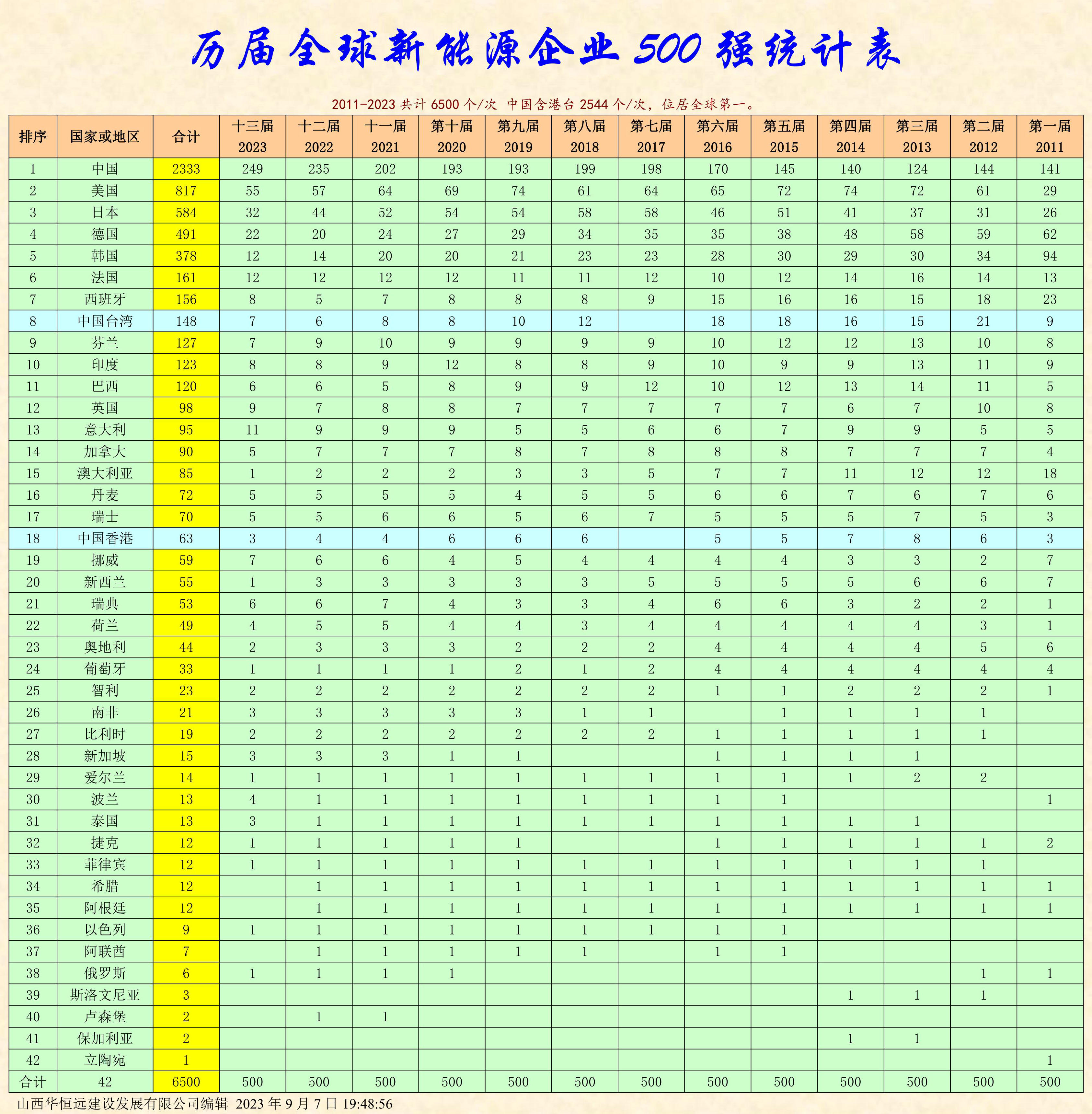 黃河新聞網訊(記者侯津剛)。500強企業中,寧德時代新能源科技股份有限公司、協鑫集團有限公司、中國電力建設股份有限公司三家中國企業位列前三位。