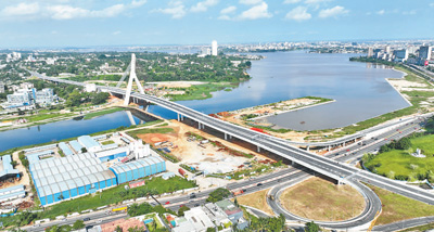 近年來(lai),中國企業為提升非(fei)洲基礎設施水平、加(jia)速互聯(lian)互通(tong)和(he)一體化進程、促進當地經(jing)濟社會發展和(he)民生改善等作出了積極貢(gong)獻。圖為中國路橋工程有限責(ze)任公司承建的科特迪(di)瓦阿(a)比讓科科迪(di)斜拉橋項目。 |