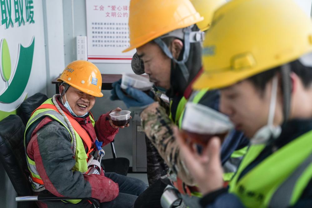 12月12日(ri),在位于北京市(shi)海淀(dian)區的一處(chu)工地上,工人(ren)在喝(he)姜茶驅(qu)寒。新華(hua)社記者 彭子洋 攝