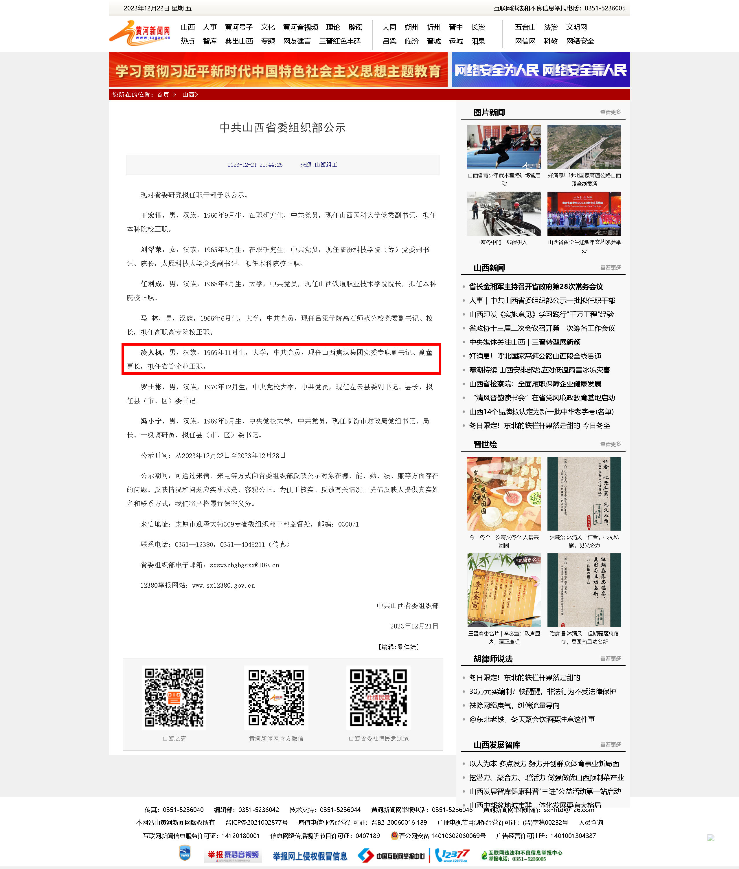 而在經理層中,除樊(fan)大宏、張有(you)獅和劉曉(xiao)暉均(jun)主(zhu)要在上(shang)市公司任職外,王曉(xiao)東現任西山煤(mei)(mei)(mei)電集團(tuan)黨(dang)委書記、董(dong)(dong)事(shi)長(chang),李爭(zheng)春(chun)現任霍州煤(mei)(mei)(mei)電集團(tuan)黨(dang)委書記、董(dong)(dong)事(shi)長(chang),武海軍則現任華晉焦煤(mei)(mei)(mei)黨(dang)委書記、董(dong)(dong)事(shi)長(chang)。