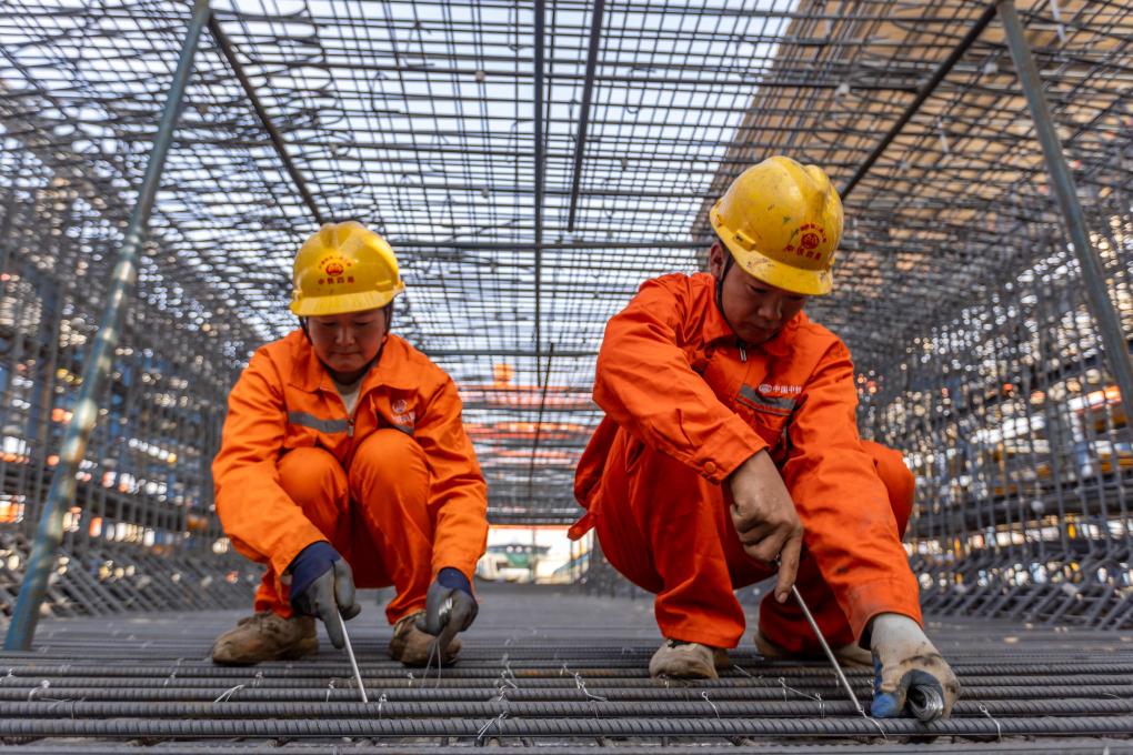 施工人員在滬蘇(su)通鐵(tie)路二期(qi)項目作業。新華社記者 王翔 攝