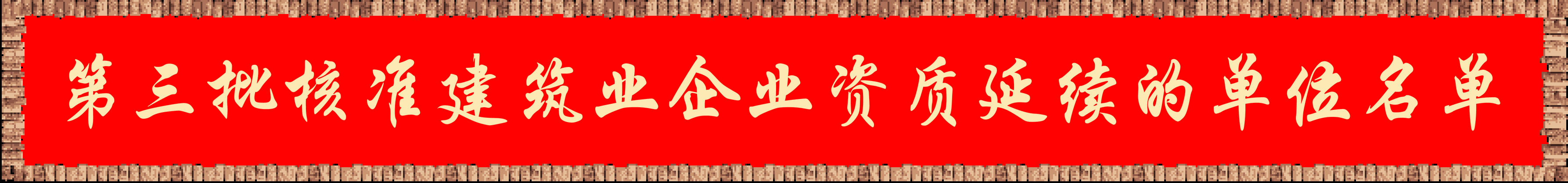 根(gen)據(ju)《中華人民共和國建(jian)(jian)筑法(fa)》及有關建(jian)(jian)設(she)工(gong)程企(qi)(qi)業(ye)資(zi)(zi)質(zhi)管理(li)規定(ding),現將(jiang)我部核準的(de)工(gong)程勘察(cha)資(zi)(zi)質(zhi)延續、工(gong)程設(she)計資(zi)(zi)質(zhi)延續、建(jian)(jian)筑業(ye)企(qi)(qi)業(ye)資(zi)(zi)質(zhi)延續、工(gong)程監理(li)企(qi)(qi)業(ye)資(zi)(zi)質(zhi)延續的(de)單位名單(2023年度(du)第三批)予以公布。未予核準的(de)單位可登錄住(zhu)房城鄉建(jian)(jian)設(she)部政務服務門戶,點(dian)擊“申(shen)請事項辦理(li)進度(du)查詢(受理(li)發證信息(xi)查詢)”欄目(mu)查詢原(yuan)因(yin)。