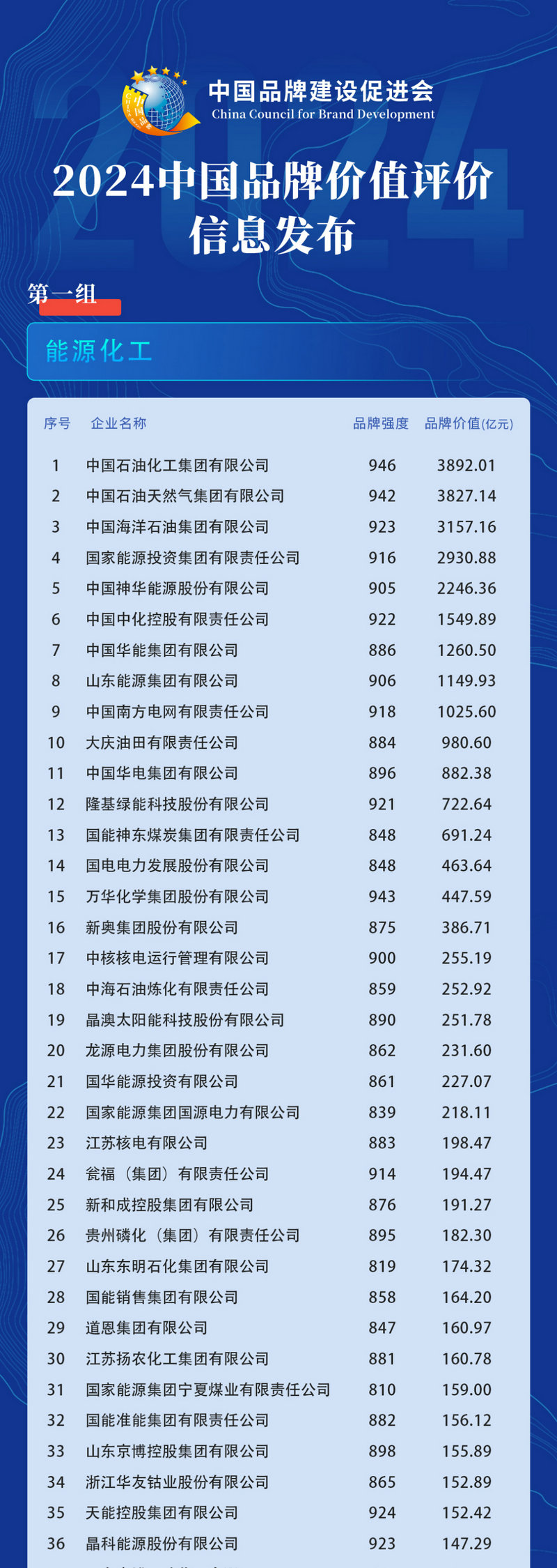 今年參加(jia)評(ping)(ping)價(jia)(jia)(jia)的(de)(de)品(pin)(pin)牌(pai)(pai)(pai)(pai)數量達到1034個(ge),涵蓋大部(bu)分(fen)行(xing)(xing)業(ye)的(de)(de)龍頭企業(ye)。本次對其(qi)中(zhong)(zhong)(zhong)(zhong)(zhong)775個(ge)品(pin)(pin)牌(pai)(pai)(pai)(pai)進行(xing)(xing)了品(pin)(pin)牌(pai)(pai)(pai)(pai)價(jia)(jia)(jia)值評(ping)(ping)價(jia)(jia)(jia)信(xin)息發布,發布總品(pin)(pin)牌(pai)(pai)(pai)(pai)價(jia)(jia)(jia)值為125858億(yi)元(yuan),比去年總品(pin)(pin)牌(pai)(pai)(pai)(pai)價(jia)(jia)(jia)值增(zeng)加(jia)24348億(yi)元(yuan),平(ping)均品(pin)(pin)牌(pai)(pai)(pai)(pai)價(jia)(jia)(jia)值增(zeng)長21億(yi)元(yuan)。其(qi)中(zhong)(zhong)(zhong)(zhong)(zhong),品(pin)(pin)牌(pai)(pai)(pai)(pai)價(jia)(jia)(jia)值超(chao)過千億(yi)元(yuan)的(de)(de)有(you)28家,而(er)中(zhong)(zhong)(zhong)(zhong)(zhong)石(shi)化、中(zhong)(zhong)(zhong)(zhong)(zhong)石(shi)油、中(zhong)(zhong)(zhong)(zhong)(zhong)國(guo)工(gong)商銀(yin)行(xing)(xing)、貴州茅(mao)臺酒、中(zhong)(zhong)(zhong)(zhong)(zhong)國(guo)建設銀(yin)行(xing)(xing)、中(zhong)(zhong)(zhong)(zhong)(zhong)海油、國(guo)家能源投資(zi)集(ji)團、中(zhong)(zhong)(zhong)(zhong)(zhong)國(guo)建筑集(ji)團、五糧液集(ji)團、中(zhong)(zhong)(zhong)(zhong)(zhong)信(xin)股份、平(ping)安保險(xian)、中(zhong)(zhong)(zhong)(zhong)(zhong)國(guo)神(shen)華能源、中(zhong)(zhong)(zhong)(zhong)(zhong)國(guo)保利集(ji)團等(deng)13個(ge)品(pin)(pin)牌(pai)(pai)(pai)(pai)的(de)(de)品(pin)(pin)牌(pai)(pai)(pai)(pai)價(jia)(jia)(jia)值超(chao)過2000億(yi)元(yuan)。
