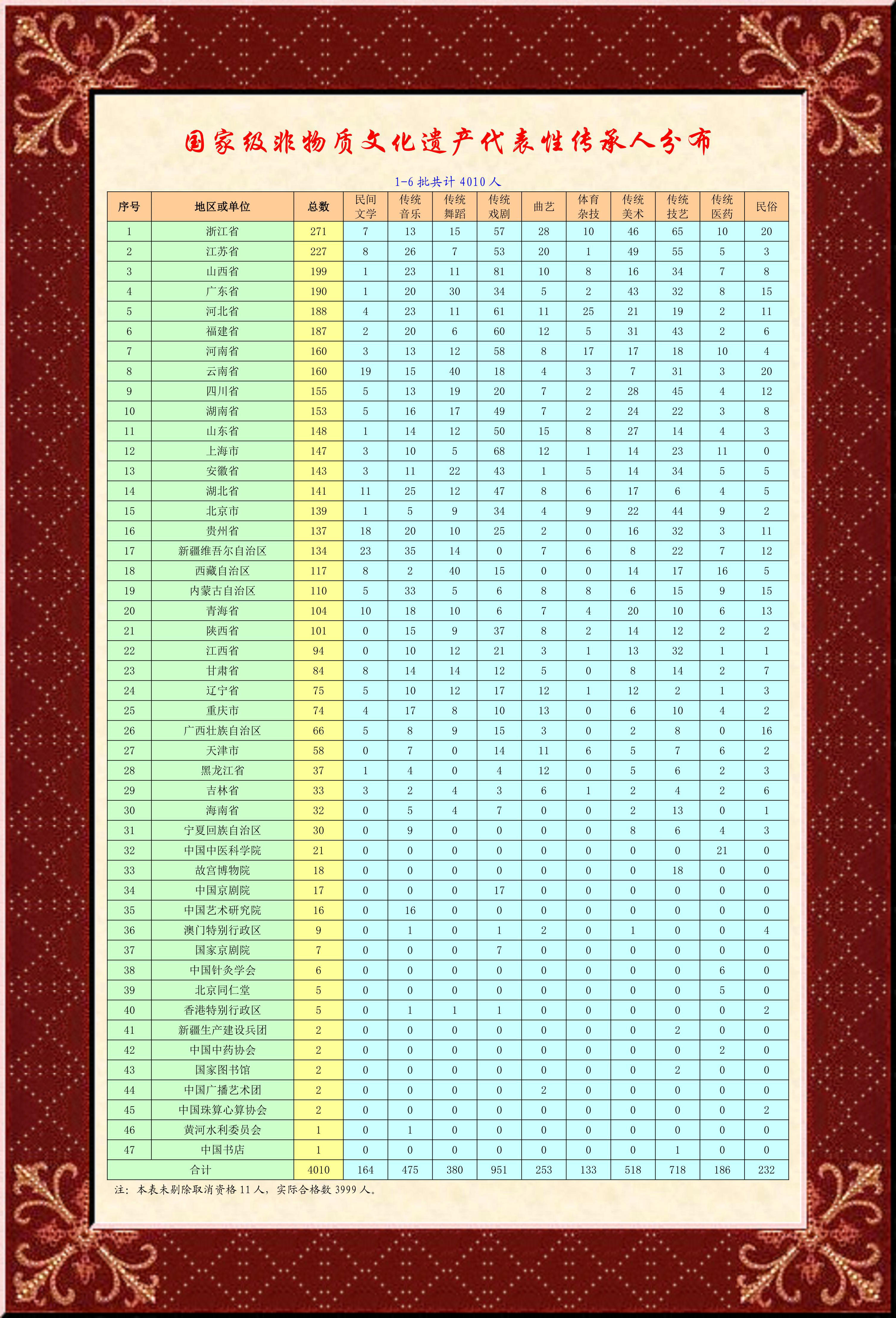 【行業資料】國家級非物質文化遺產代表性項目代表性傳承人