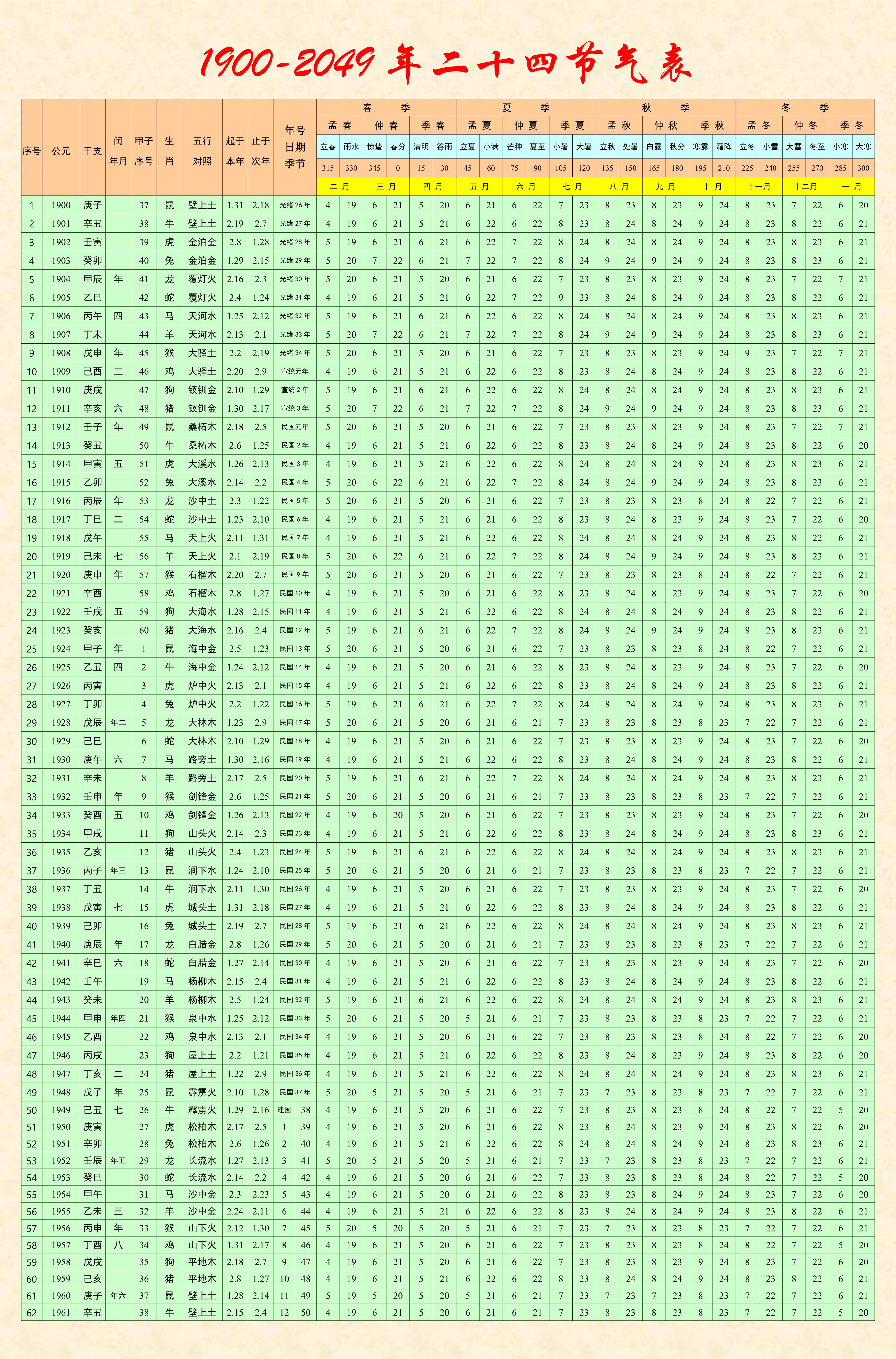 【行業資料】1900-2049年二十四節氣表