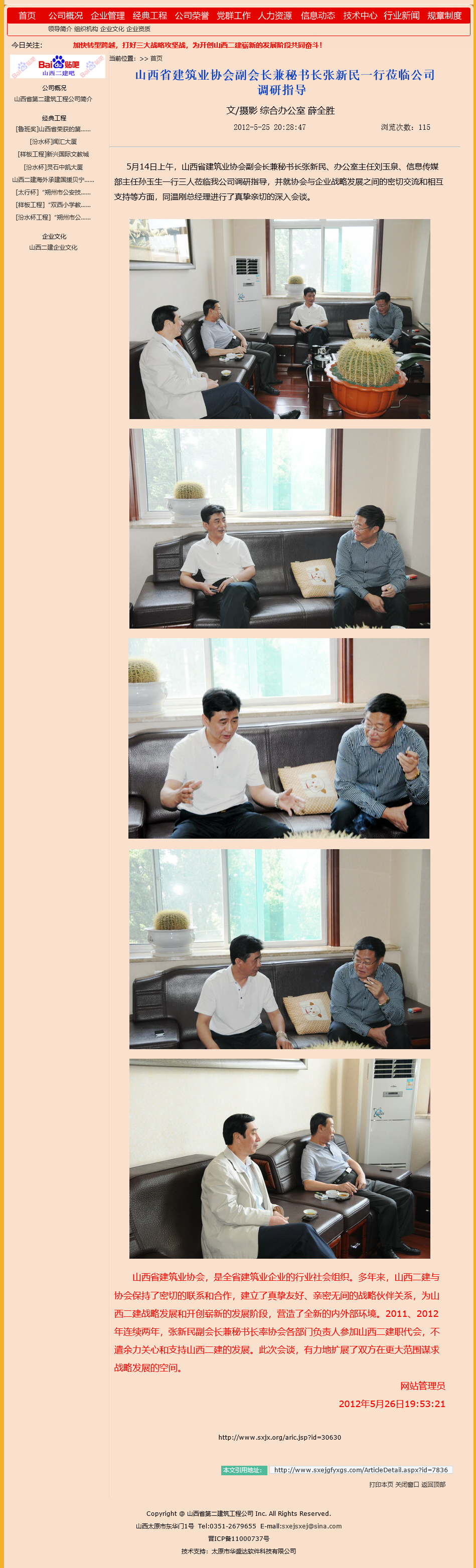 山西省建筑業協會副會長兼秘書長張新民一行 蒞臨公司調研指導