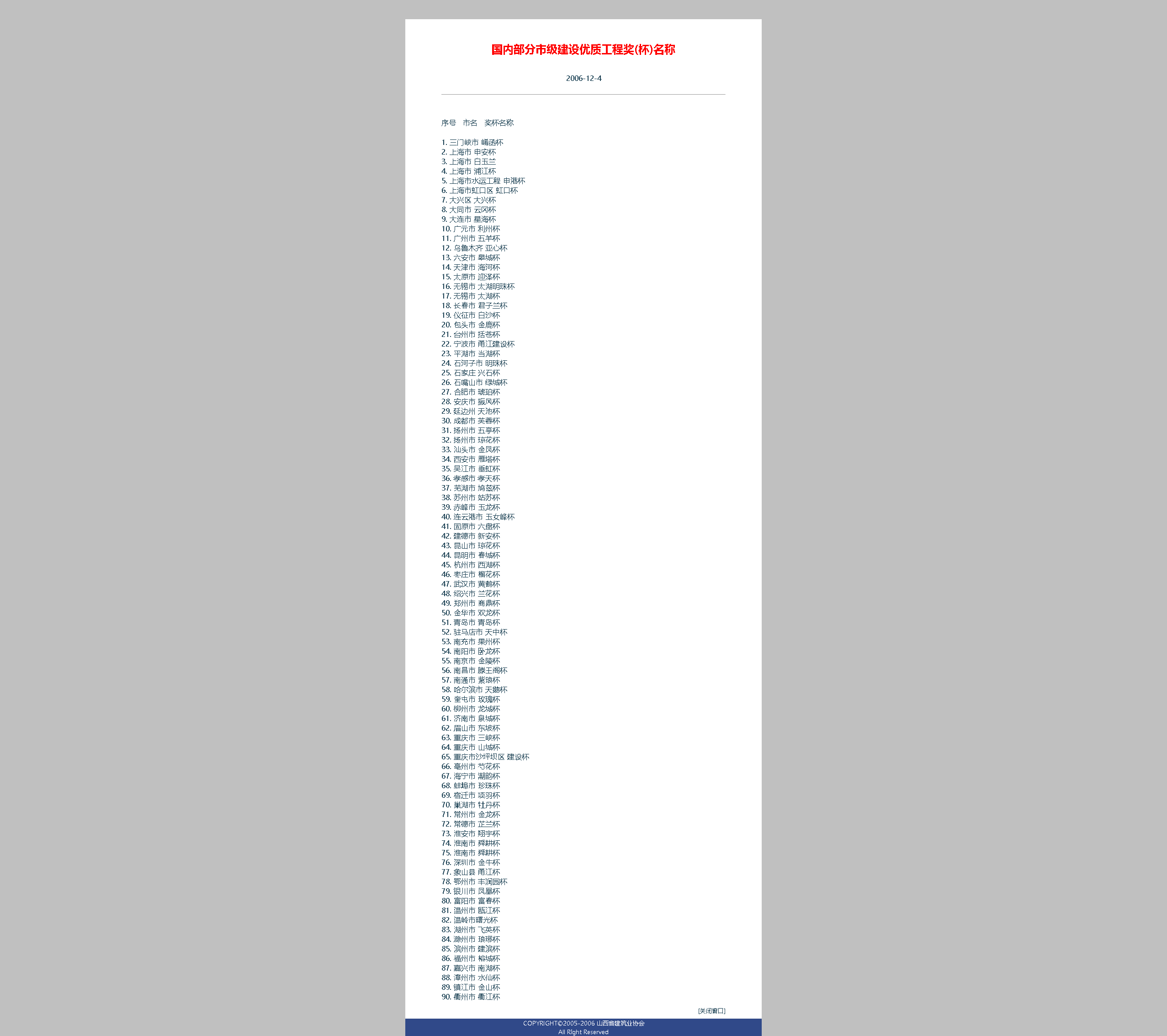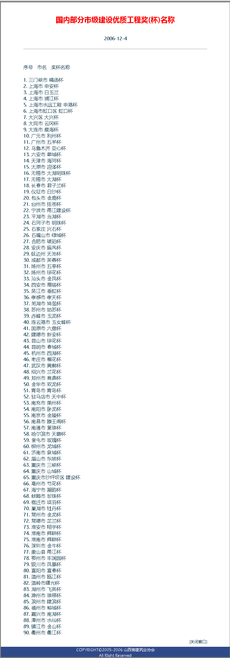 這是十七年前,在山西省建筑業協會管理網站時,收集的全國各地建筑業評獎名稱,對于了解我們這個行業和社會的重視程度,管中窺豹,可見一斑。做企業,首先要知道和懂得瞄準戰略目標,有的放矢,正中靶心。