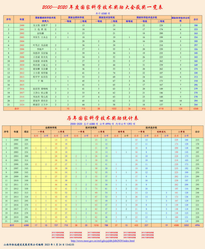 2000—2020年度國家科學技術獎勵大會獲獎名單