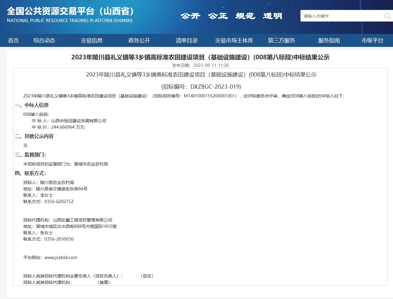 2023年陵川縣禮義鎮等3鄉鎮高標準農田建設項目(基礎設施建設)8標段