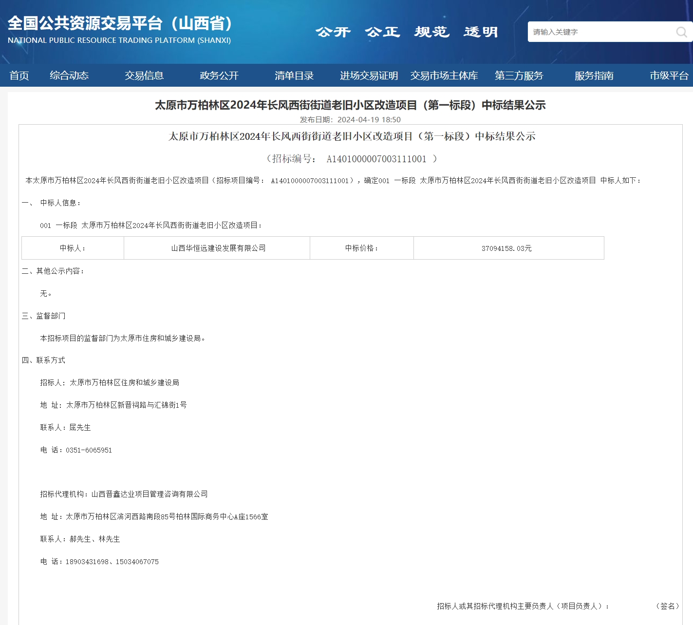 太原市萬柏林區2024年長風西街街道老舊小區改造項目(第一標段)