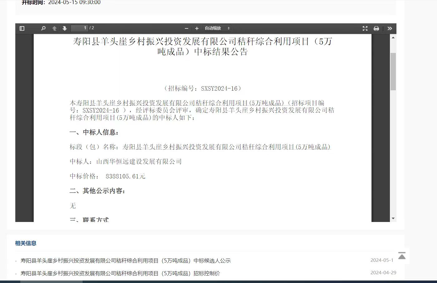 2024年壽陽縣羊頭崖鄉村振興投資發展有限公司秸稈綜合利用項日