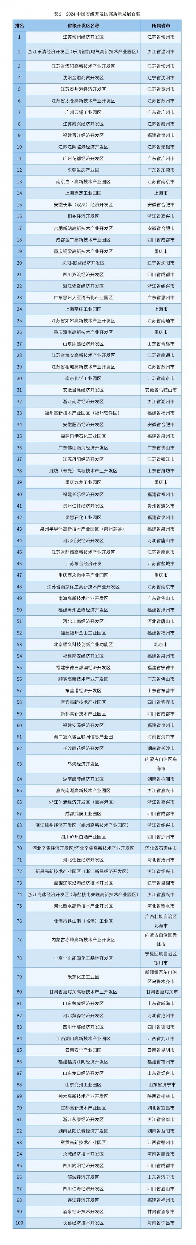為(wei)提升評價的(de)(de)科學性,報告繼續堅(jian)持將(jiang)“開發(fa)區(qu)規上(shang)工(gong)業總產值或園區(qu)總收(shou)入超過300億元(yuan)”作(zuo)為(wei)省級(ji)開發(fa)區(qu)高(gao)(gao)質量發(fa)展(zhan)(zhan)百強的(de)(de)門檻(jian)條件。依據(ju)各園區(qu)的(de)(de)綜合得(de)分,從高(gao)(gao)到低進行(xing)排序(xu),得(de)分居(ju)前(qian)100位(wei)的(de)(de)即為(wei)“2024中國省級(ji)開發(fa)區(qu)高(gao)(gao)質量發(fa)展(zhan)(zhan)百強”(表2)。