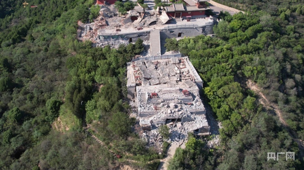 6月3日,太原市太山博物館發布閉館公告,稱因近期發生地質災害,即日起將臨時閉館。4日,央廣網記者實地探訪事發地,航拍畫面顯示, 山上部分建筑坍塌嚴重,建筑外圍一處山體出現大坑,大量黃土裸露。