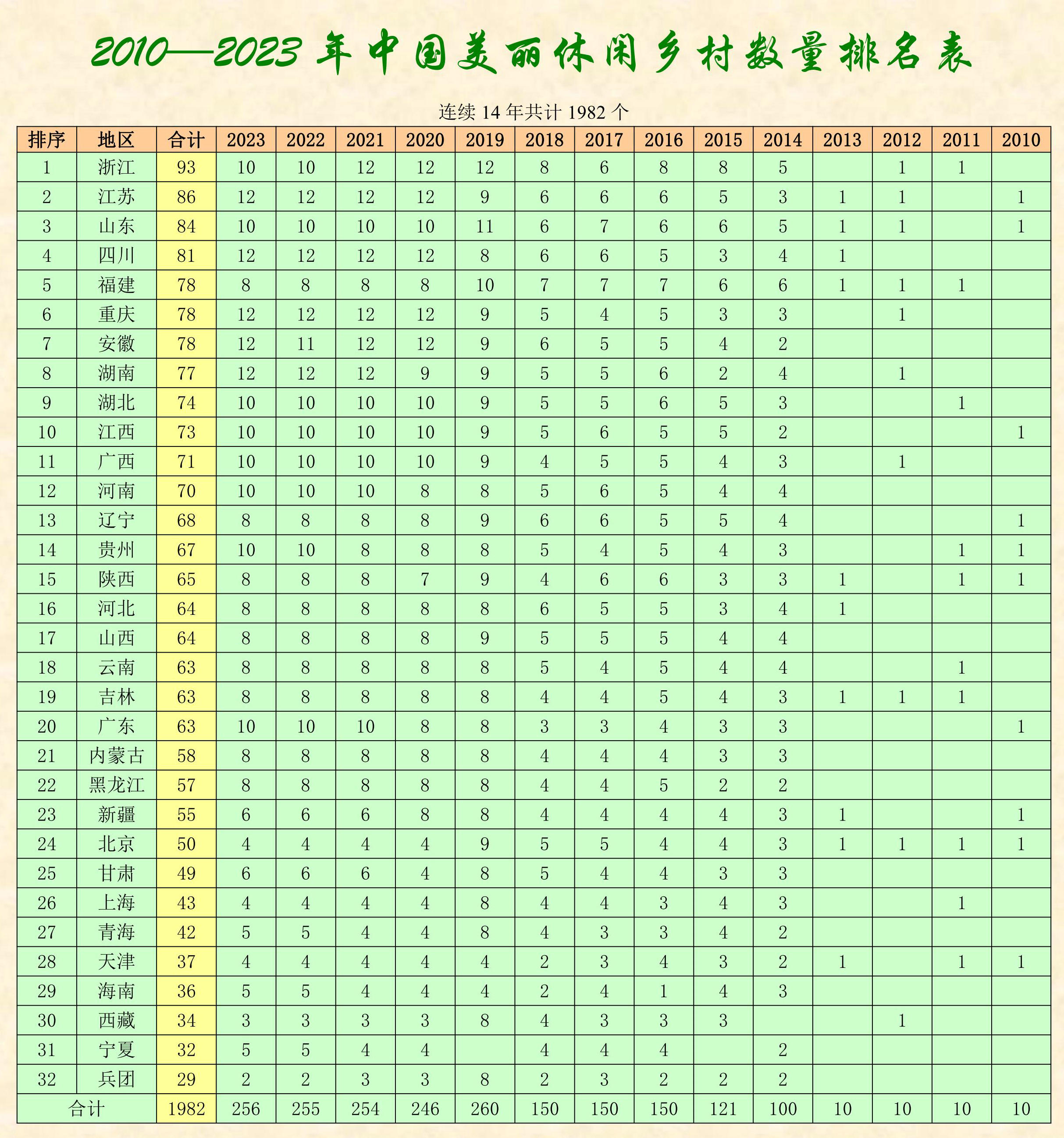 【行業資料】2010-2022中國美麗休閑鄉村名錄
