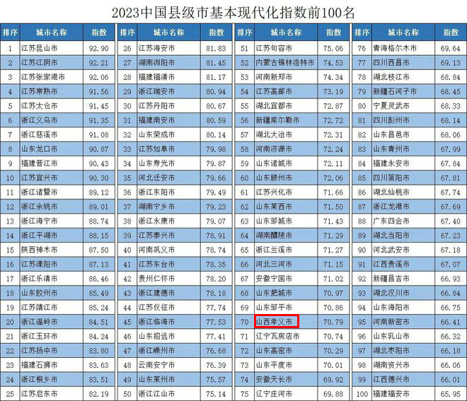 12月(yue)19日,競爭力智庫、北(bei)京中新城(cheng)市規劃設計研究院等機構在北(bei)京聯合(he)發(fa)布了《》(以(yi)下簡稱《報(bao)告》),揭(jie)曉(xiao)了“2023中國地級市基(ji)(ji)本現代化指(zhi)(zhi)數(shu)前(qian)100名(含副省級城(cheng)市,下同)”“2023中國縣級市基(ji)(ji)本現代化指(zhi)(zhi)數(shu)前(qian)100名”。