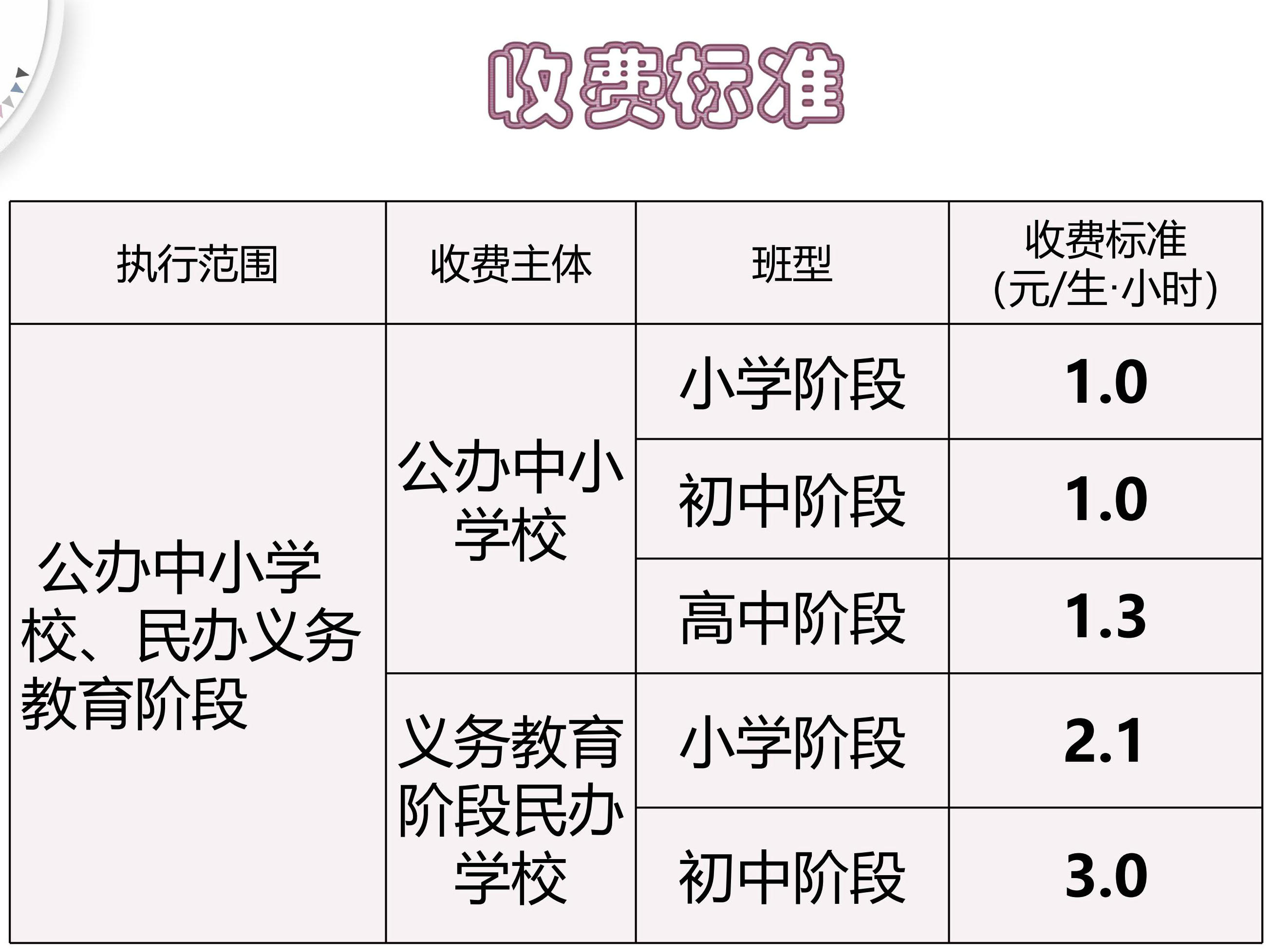 中小(xiao)學生(sheng)課后(hou)服務收(shou)費(fei)屬(shu)于服務性收(shou)費(fei),按學期由學校向(xiang)學生(sheng)收(shou)取(qu)。收(shou)費(fei)時應使用(yong)稅(shui)(shui)務機關監制(zhi)的稅(shui)(shui)務發(fa)票。學校要嚴格執行收(shou)費(fei)公(gong)示制(zhi)度,將課后(hou)服務收(shou)費(fei)標準(zhun)、服務時間、課程內容等相關信息公(gong)開,主動接受學生(sheng)、家長和(he)社會(hui)監督。