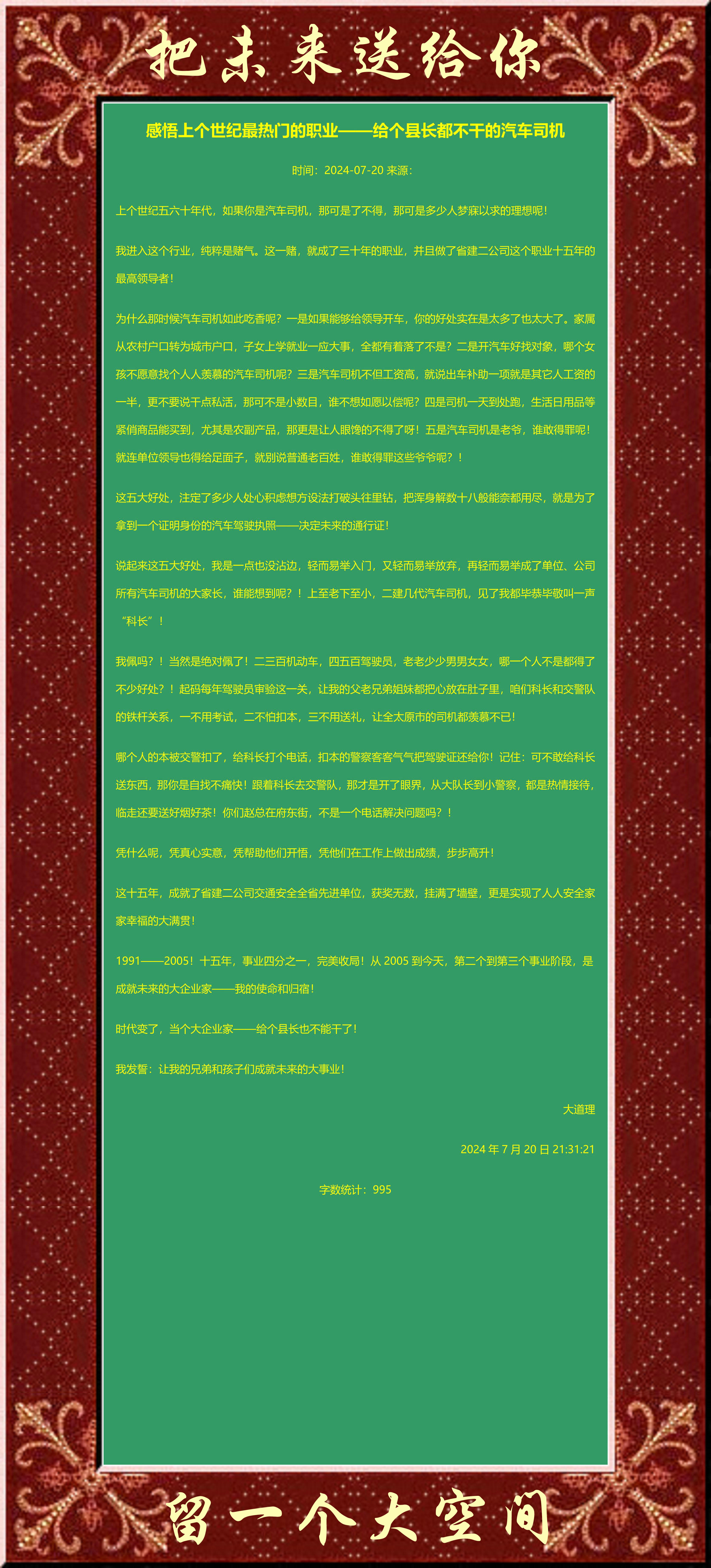 上(shang)個世紀五六十年代,如果你是(shi)汽車司機,那可是(shi)了不(bu)得,那可是(shi)多少人夢(meng)寐以求的理想呢(ni)!