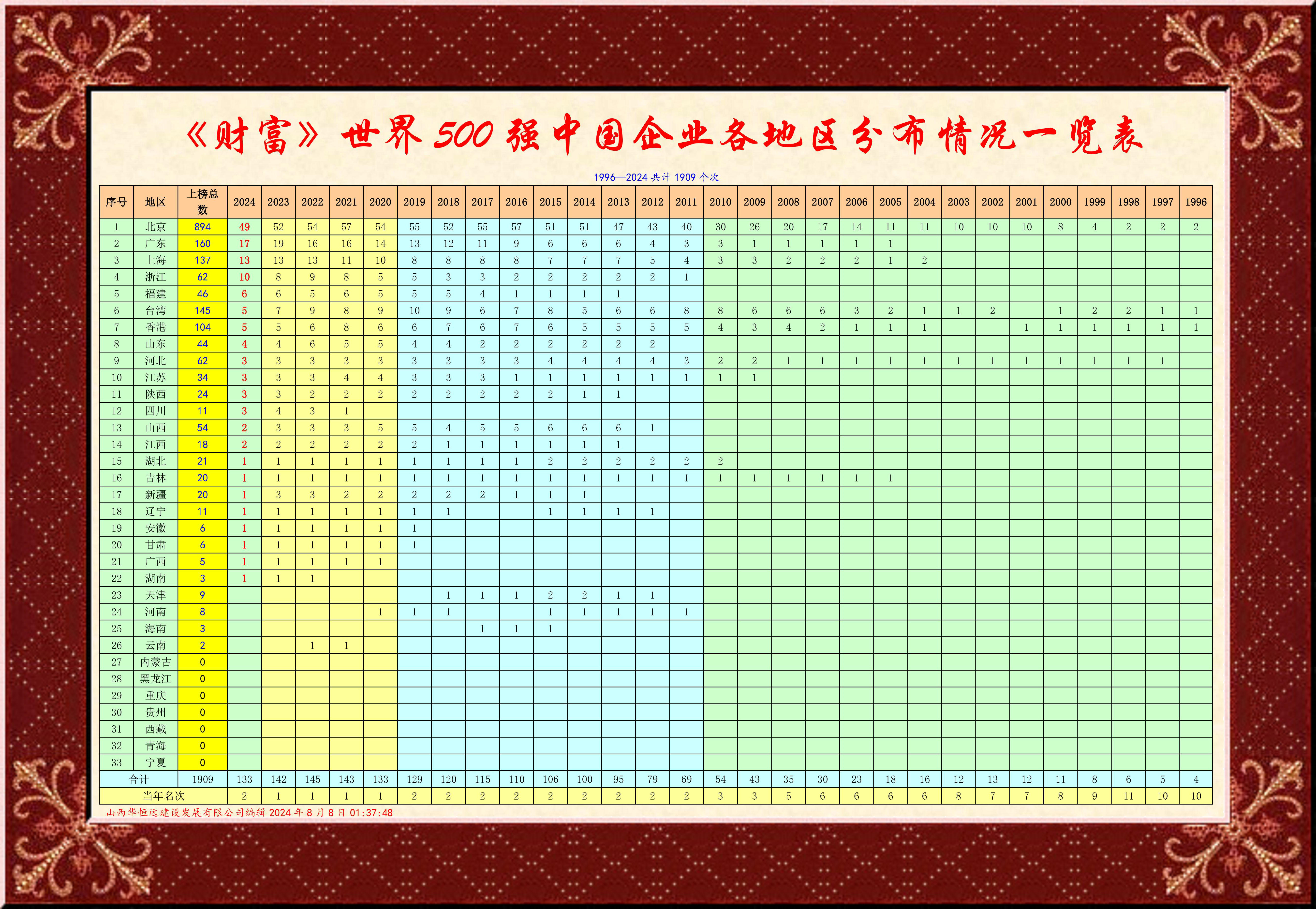 今年《財(cai)富》世界500強中國(guo)上(shang)榜企業133家,分布22個省(市)區,北京、廣東、上海位居前三,
