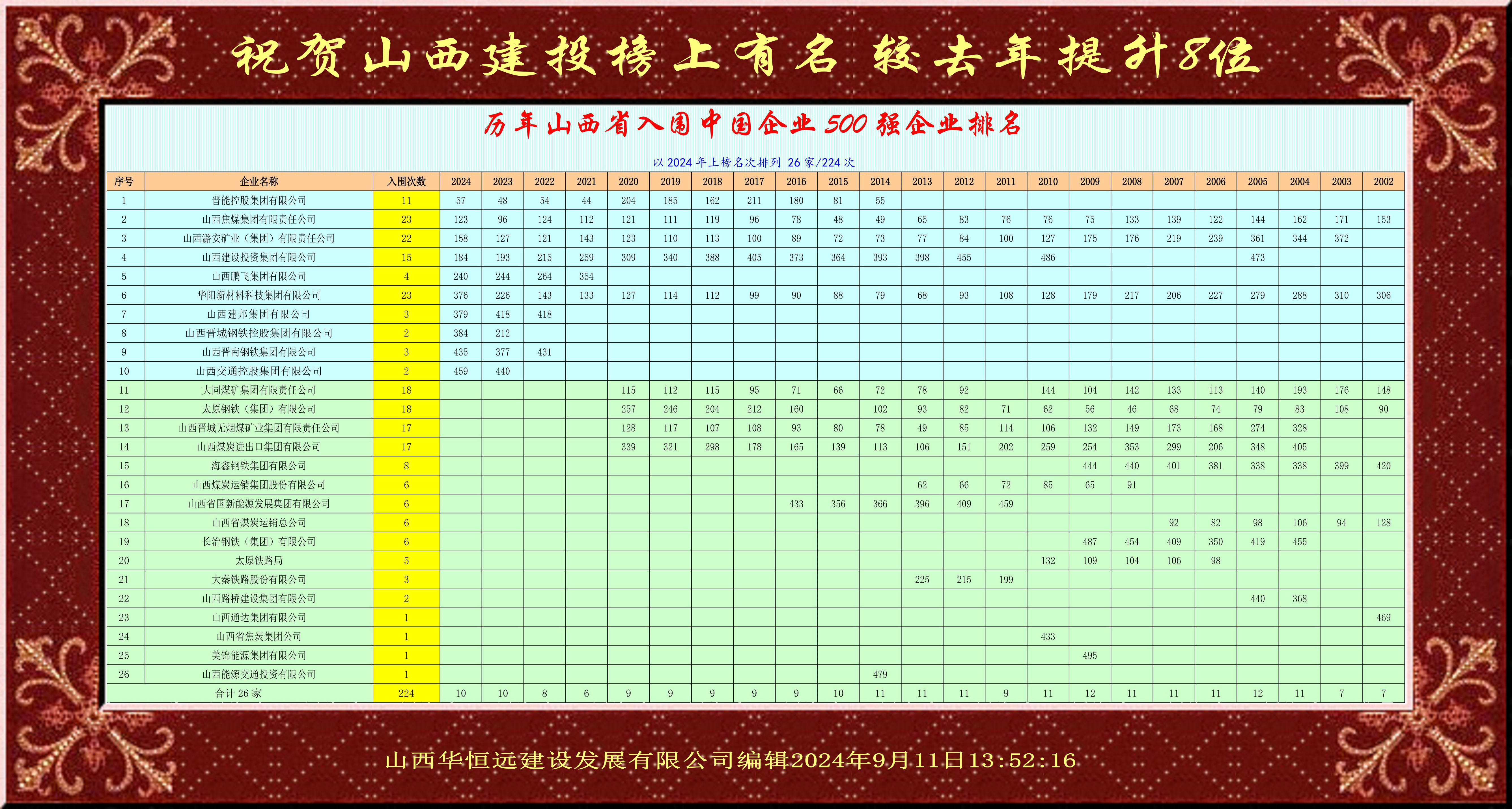 感悟2024中國500強企業排行榜——祝賀山西建投較去年提升9位