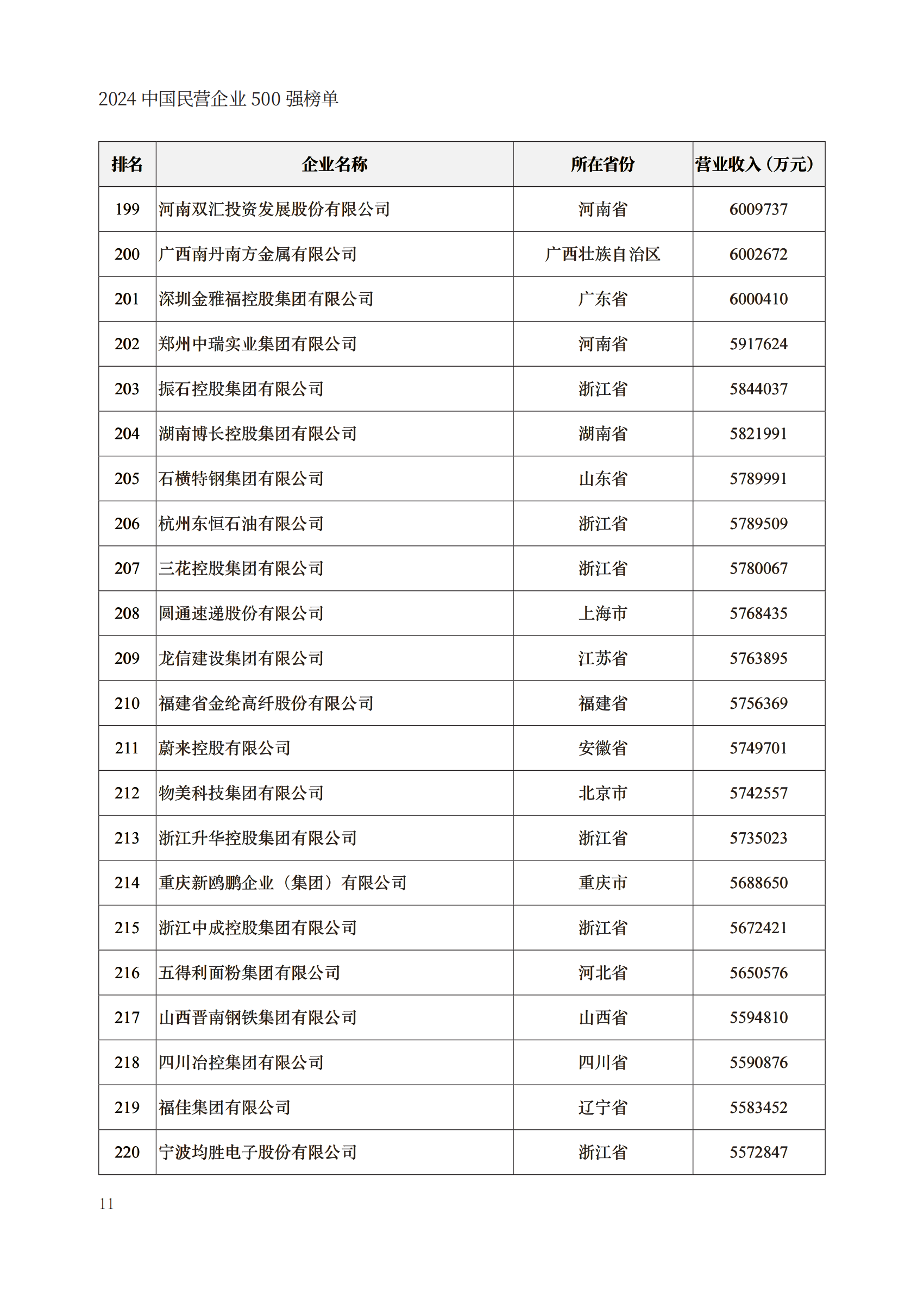 【行業動態】2024中國民營企業500強 制造業民營企業500強 服務業民營企業100強