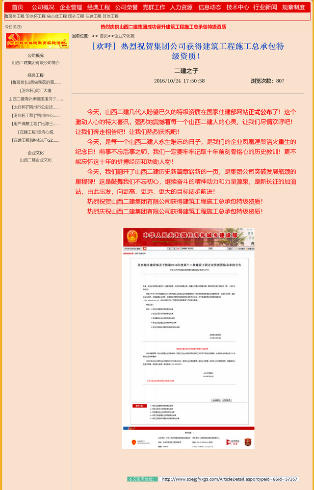 熱烈慶祝山西二建集團有限公司獲得建筑工程施工總承包特級資質!