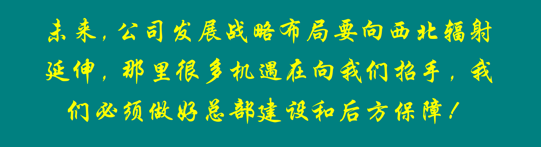 剛才,掌門人新疆發回信息,回復:“可,拿下!為下一步鋪路!”未來,公司發展戰略布局要向西北輻射延伸,那里很多機遇在向我們招手,我們必須做好總部建設和后方保障!