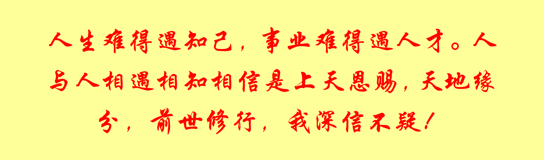 人(ren)生難得遇(yu)(yu)知己,事業難得遇(yu)(yu)人(ren)才。人(ren)與人(ren)相(xiang)遇(yu)(yu)相(xiang)知相(xiang)信(xin)(xin)是(shi)上(shang)天(tian)恩賜,天(tian)地緣分(fen),前世(shi)(shi)修行,我(wo)深信(xin)(xin)不(bu)疑!無緣即無份,對面不(bu)相(xiang)識,老死不(bu)往來,這(zhe)就(jiu)是(shi)天(tian)意!為(wei)什(shen)么(me)(me)人(ren)世(shi)(shi)間(jian)那么(me)(me)多人(ren),而(er)偏偏能(neng)夠進入你(ni)的心(xin)里(li)的人(ren)那么(me)(me)少,那么(me)(me)重要,那么(me)(me)讓你(ni)心(xin)甘(gan)情愿為(wei)他(ta)(ta)們(men)付出,為(wei)他(ta)(ta)們(men)奮(fen)斗,為(wei)他(ta)(ta)們(men)活著(zhu)呢?!這(zhe)不(bu)是(shi)天(tian)意又是(shi)什(shen)么(me)(me)?!