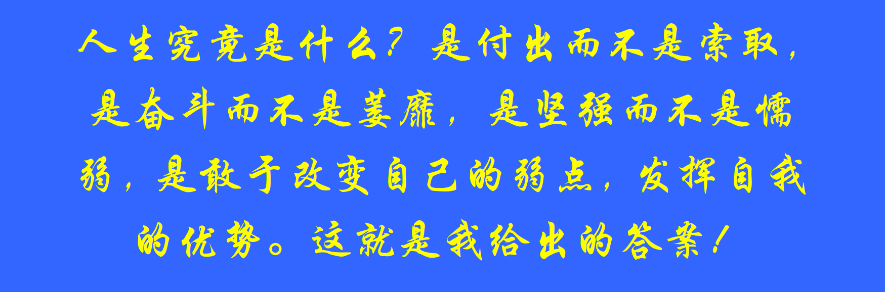 現在是2023年3月2日01:08:11,我在思考人生究竟是什么?是付出而不是索取,是奮斗而不是萎靡,是堅強而不是懦弱,是敢于改變自己的弱點,發揮自我的優勢。這(zhe)就是我給(gei)出的答案!