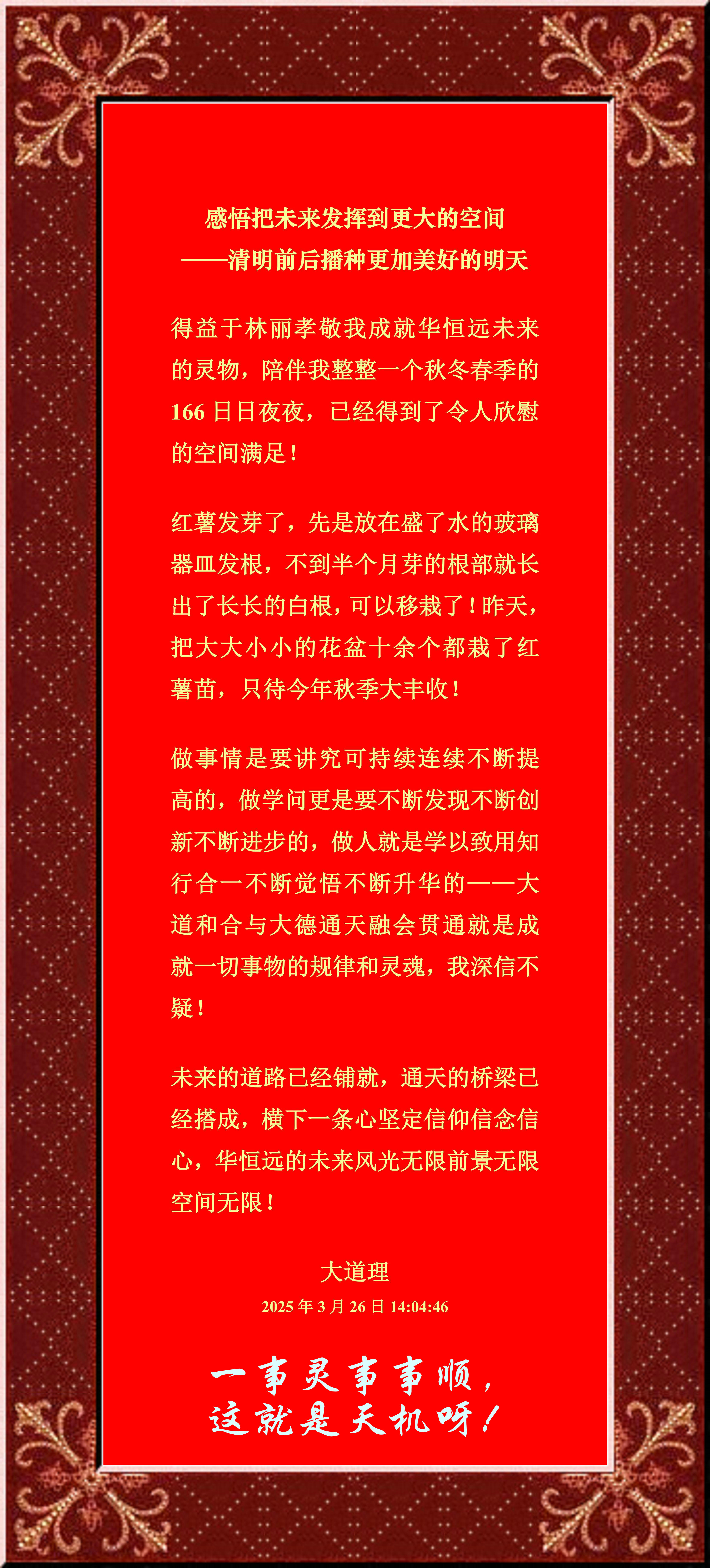 做(zuo)事情是(shi)要(yao)講究(jiu)可持續(xu)連(lian)續(xu)不斷(duan)(duan)提高的(de),做(zuo)學(xue)問(wen)更是(shi)要(yao)不斷(duan)(duan)發現(xian)不斷(duan)(duan)創(chuang)新(xin)不斷(duan)(duan)進步的(de),做(zuo)人就是(shi)學(xue)以致用知行合(he)一(yi)不斷(duan)(duan)覺悟(wu)不斷(duan)(duan)升華的(de)——大道和合(he)與(yu)大德通天融會貫(guan)通就是(shi)成就一(yi)切事物的(de)規(gui)律和靈魂,我深信不疑(yi)!