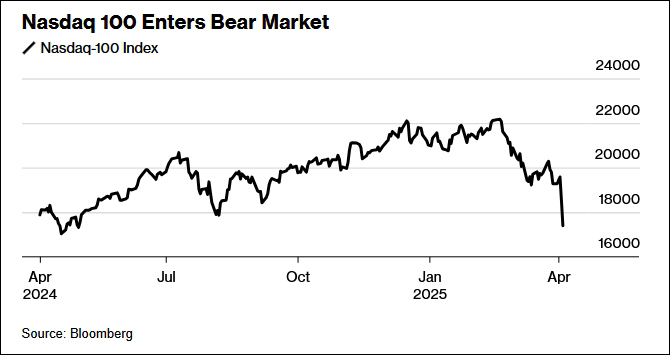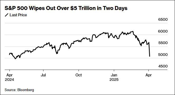 美(mei)國總統特朗普2日(ri)宣布“對等關稅”后,美(mei)國股(gu)市連(lian)續第(di)二(er)天跳水。當地時(shi)間4日(ri),美(mei)股(gu)三大指(zhi)(zhi)數(shu)均暴跌(die)超過5%。其中,標(biao)普500指(zhi)(zhi)數(shu)兩個交易日(ri)內(nei)蒸發(fa)市值達(da)5.4萬億美(mei)元,創下新紀(ji)錄(lu);納斯達(da)克指(zhi)(zhi)數(shu)從近期高(gao)位(wei)累計跌(die)超20%,確(que)認進入(ru)熊市。