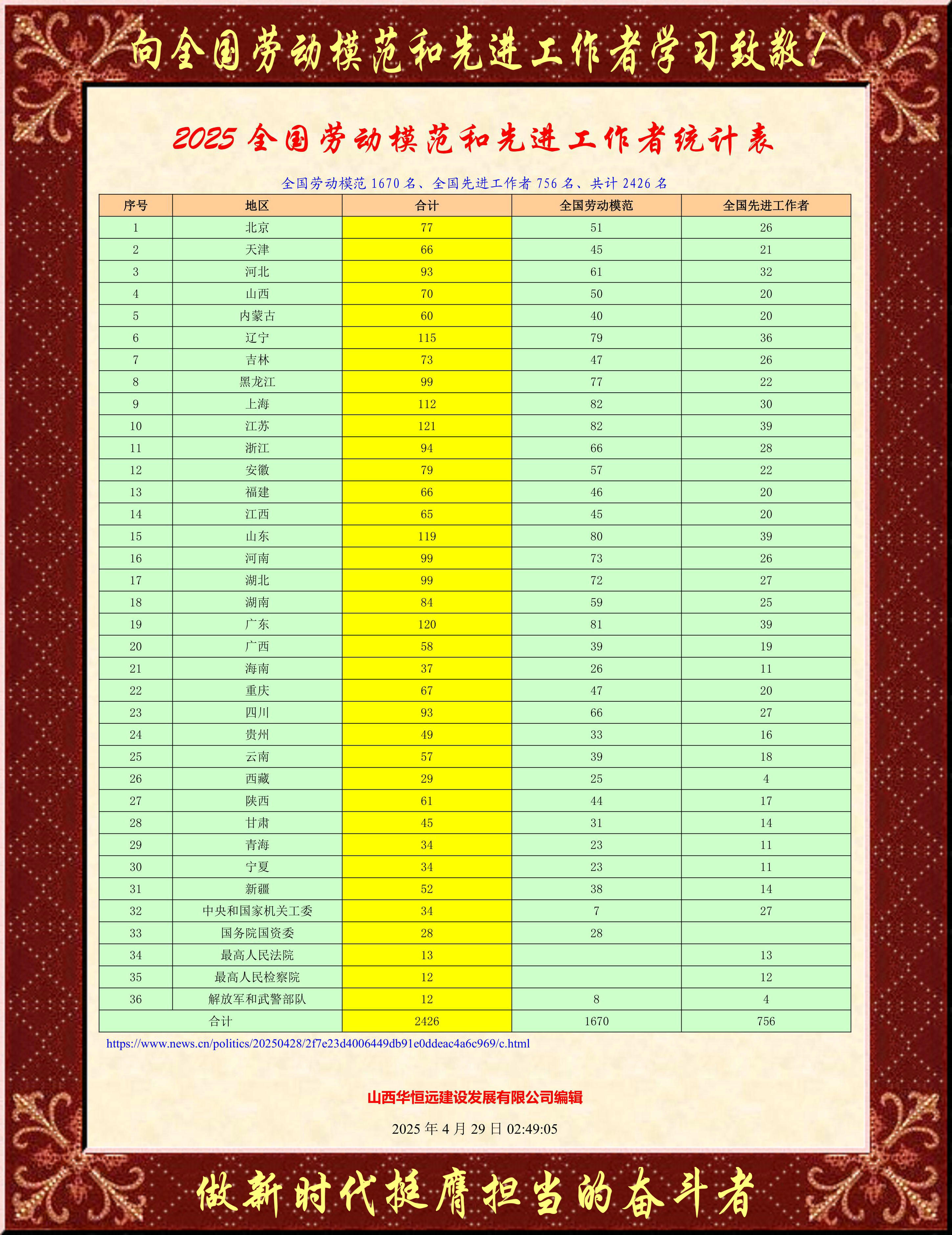 【學習園地】2024年山西省勞動模范、先進工作者和模范集體名單