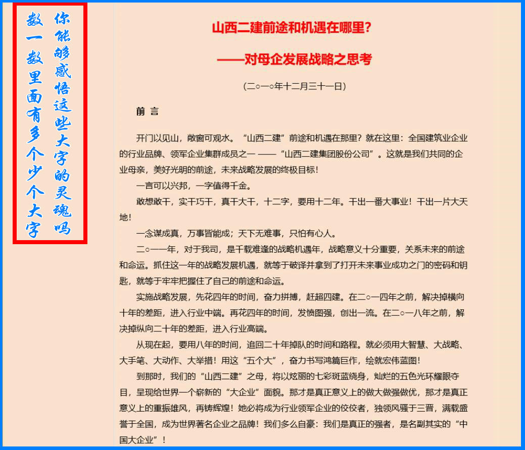來到人(ren)世間(jian),一人(ren)為大(da),二人(ren)為天,這(zhe)是與生(sheng)俱(ju)來的(de)靈感和感悟。所以(yi)我的(de)文章離不了這(zhe)個“大(da)”字,大(da)格局,大(da)境界,大(da)覺悟,大(da)手筆,大(da)魄力!