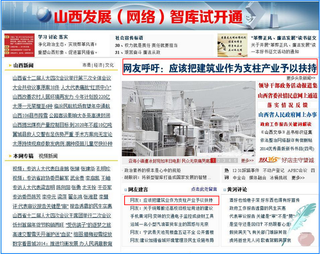 這是2015年1月30日,黃河新聞網在首頁頭條突出位置刊登我給省委書記王儒林的建言。
