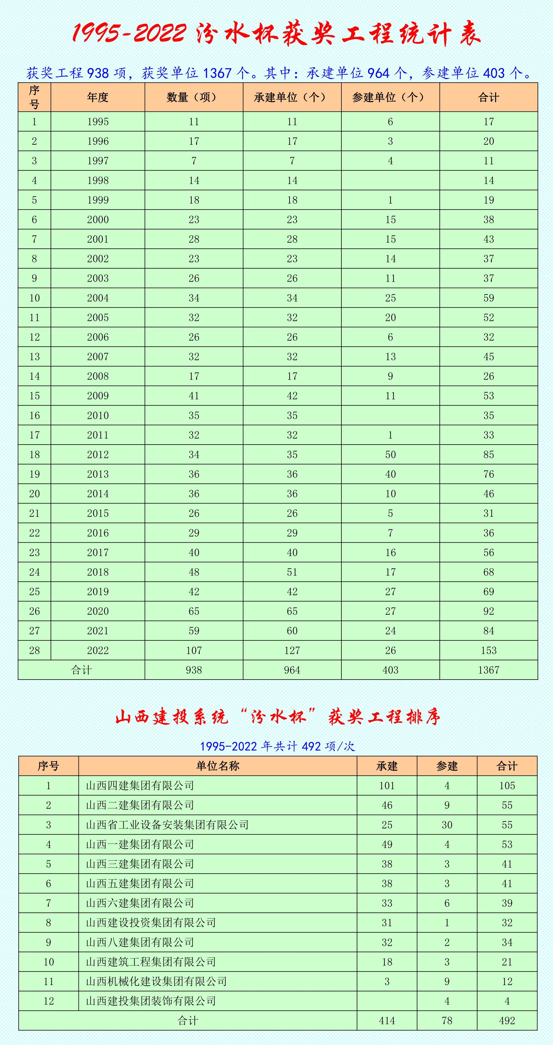 【學習園地】1995-2022山西省汾水杯工程總榜單