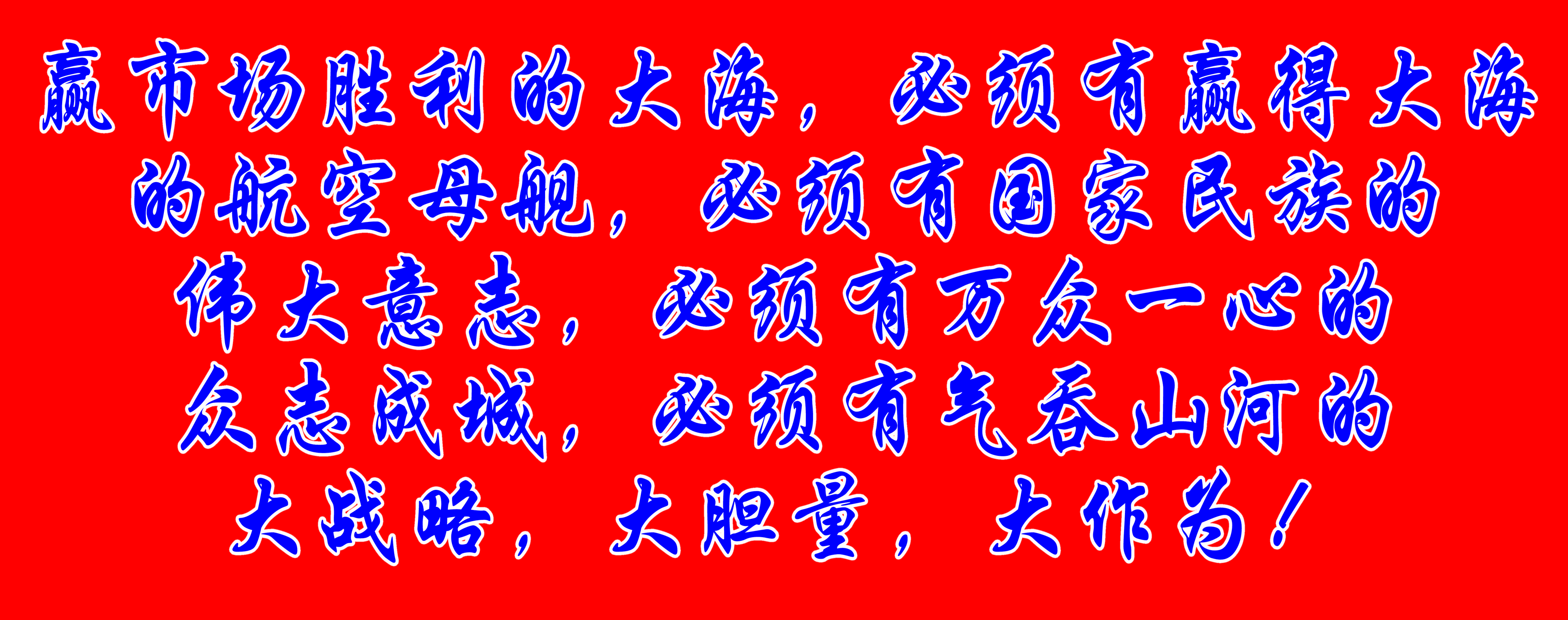 贏市場勝利的大海,必須有贏得大海的航空母艦,必須有國家民族的偉大意志,必須有萬眾一心的眾志成城,必須有氣吞山河的大戰略,大膽量,大作為!