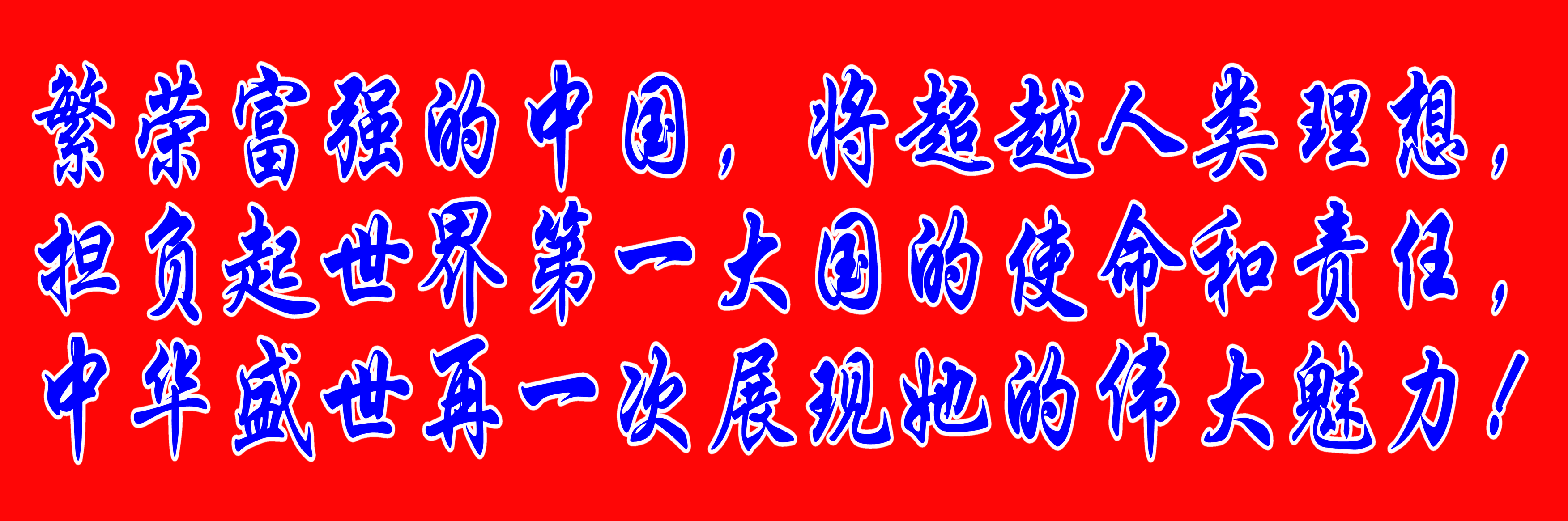 五十年以(yi)后的(de)中國(guo)和(he)世(shi)界(jie)(jie)(jie)(jie)是個(ge)什么樣呢?是世(shi)界(jie)(jie)(jie)(jie)第(di)一經濟大(da)國(guo),世(shi)界(jie)(jie)(jie)(jie)人口(kou)第(di)二大(da)國(guo)。第(di)一到(dao)第(di)二的(de)過渡,第(di)二到(dao)第(di)一的(de)轉變(bian),是量變(bian)到(dao)質變(bian)的(de)飛越(yue),事物(wu)根本性質的(de)轉變(bian)。到(dao)那(nei)個(ge)時候,中華(hua)民族(zu)史(shi)無前例(li)地聳立(li)于(yu)世(shi)界(jie)(jie)(jie)(jie)民族(zu)之(zhi)林,天下一家,世(shi)界(jie)(jie)(jie)(jie)大(da)同,繁榮富強的(de)中國(guo),將超越(yue)人類理想(xiang),擔(dan)負起世(shi)界(jie)(jie)(jie)(jie)第(di)一大(da)國(guo)的(de)使命(ming)和(he)責(ze)任(ren),中華(hua)盛世(shi)再(zai)一次(ci)展現她的(de)偉大(da)魅力(li)!